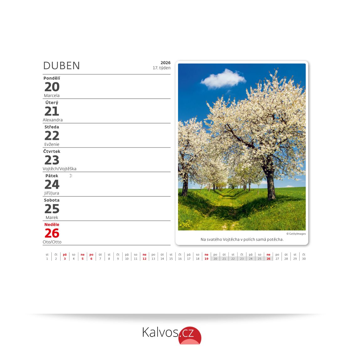 Formát kalendáře: 17,1 x 13,9 cm