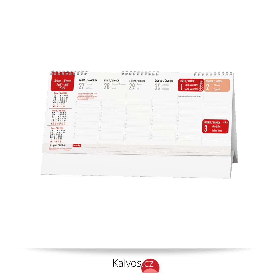 • kovová spirála twin wire, obálka je tištěna na křídový papír s gramáží 135 g/m2, stojánek je z kvalitní bílé lepenky o gramáži 600g/m2