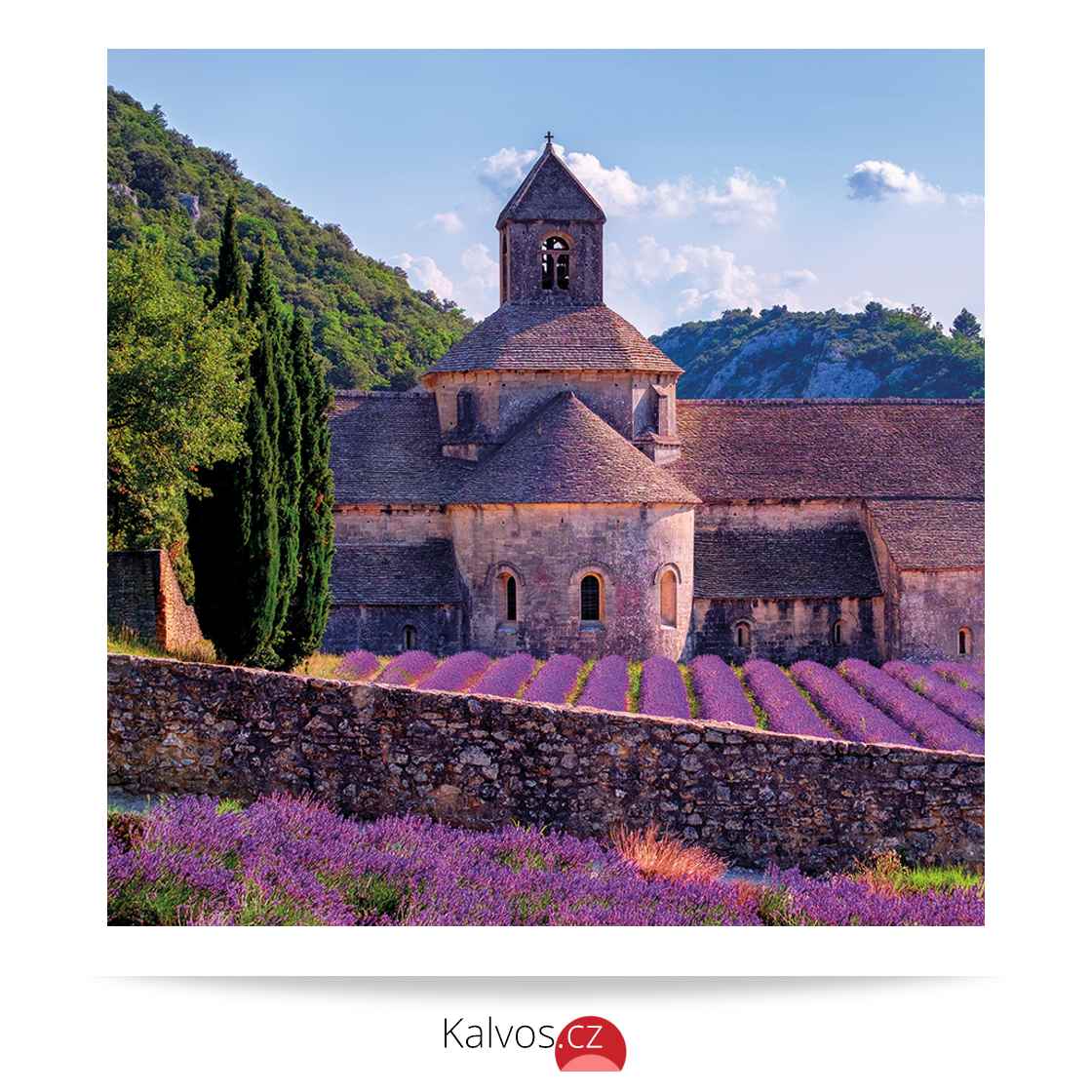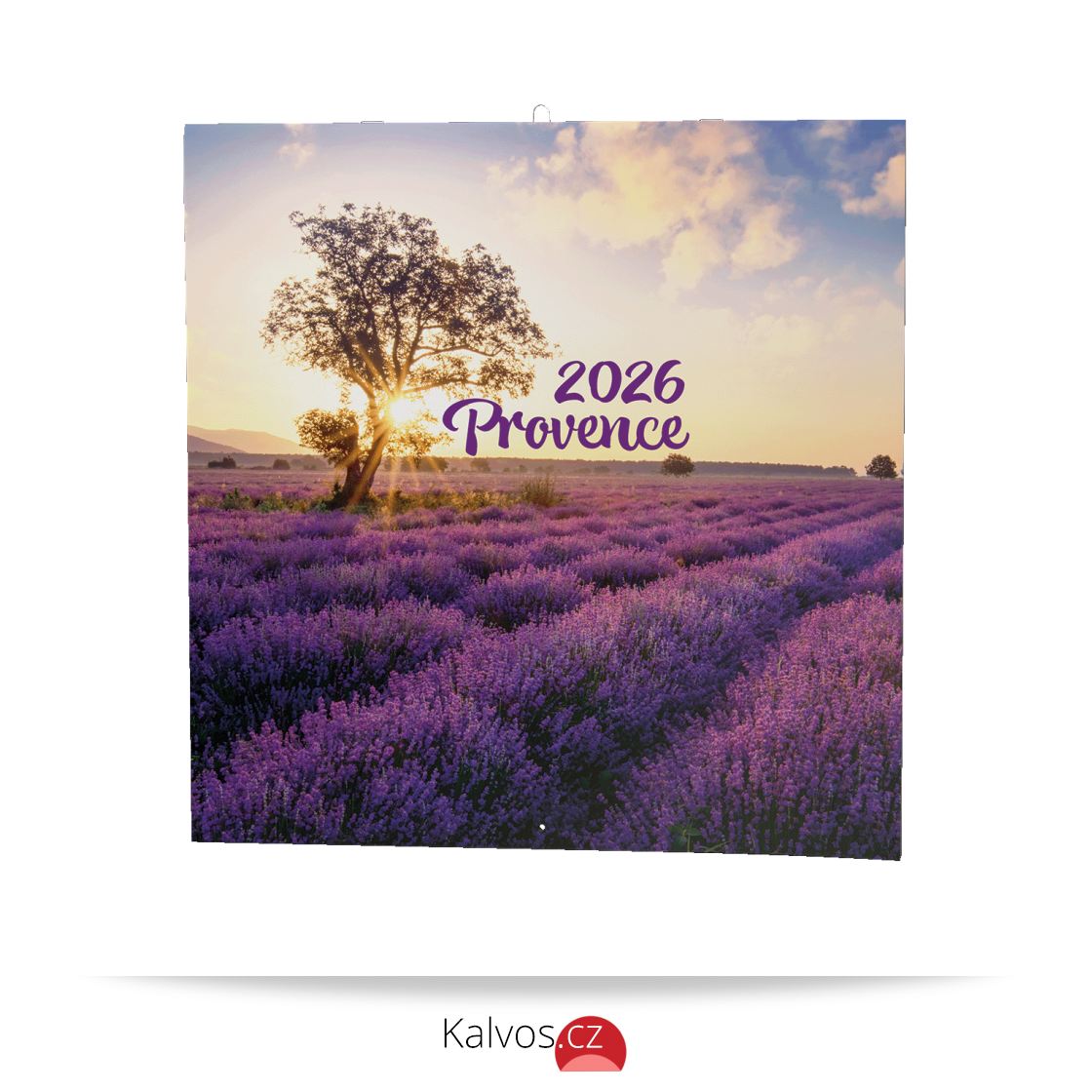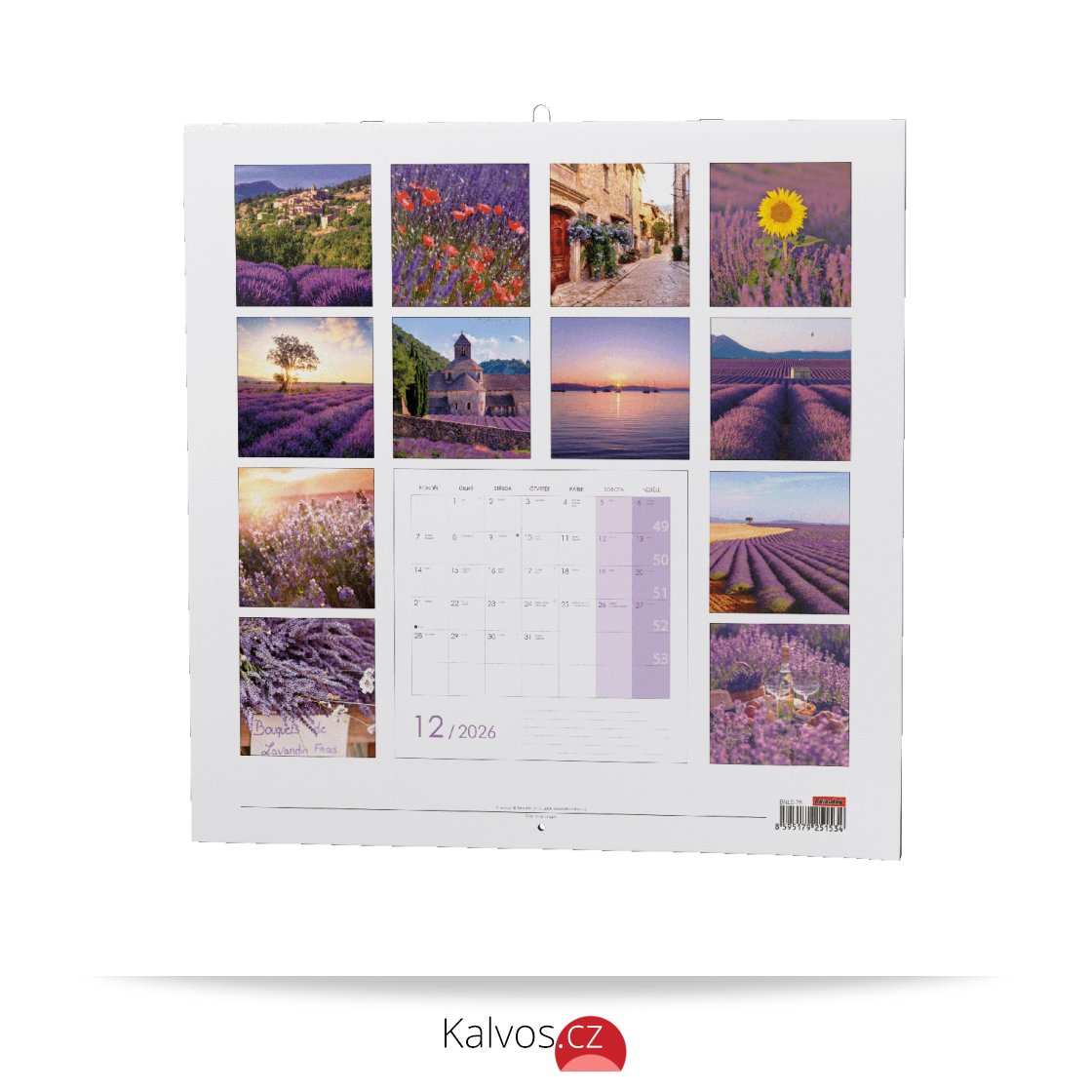 Nástěnný kalendář s měsíčním kalendáriem, v moderním formátu LP desky ve stylu Provence.