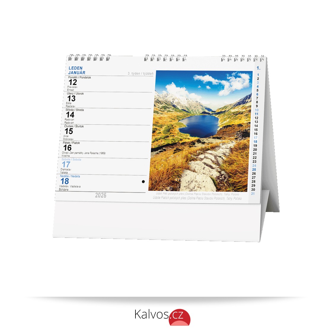 Stolní kalendář s týdenním kalendáriem s obrázky hor našich sousedů na Slovensku.