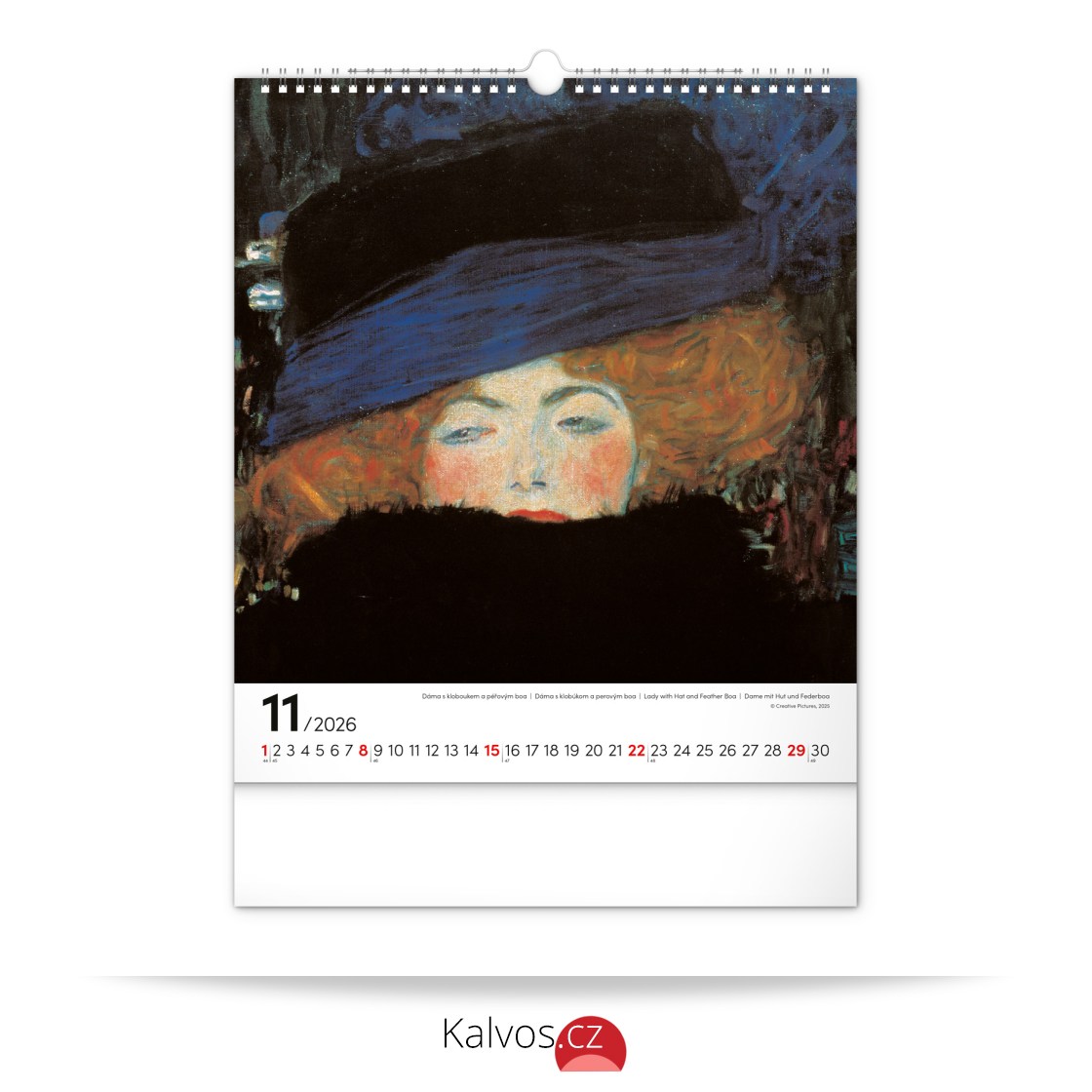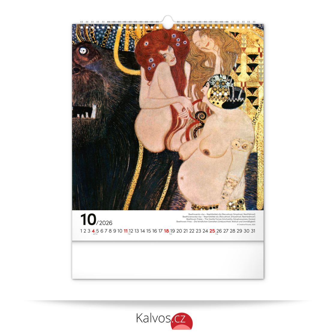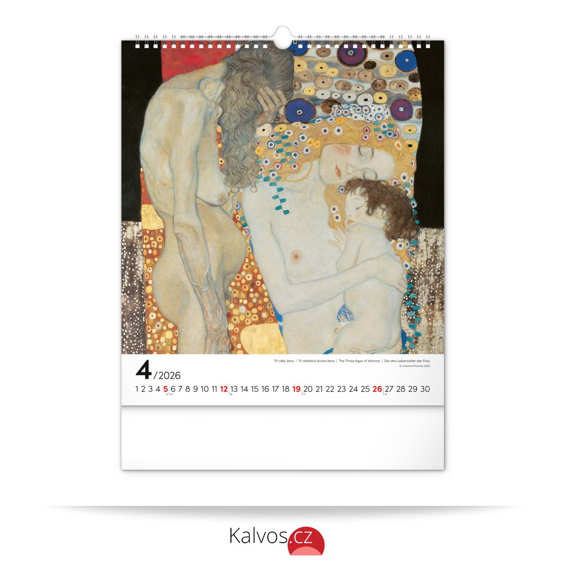 Na stranách kalendáře v obdélníkovém formátu naleznete Klimtovy obrazy žen vytištěné na kvalitním papíře s vysokou gramáží. Kalendář obsahuje univerzální kalendárium a popisky ve čtyřech jazycích.