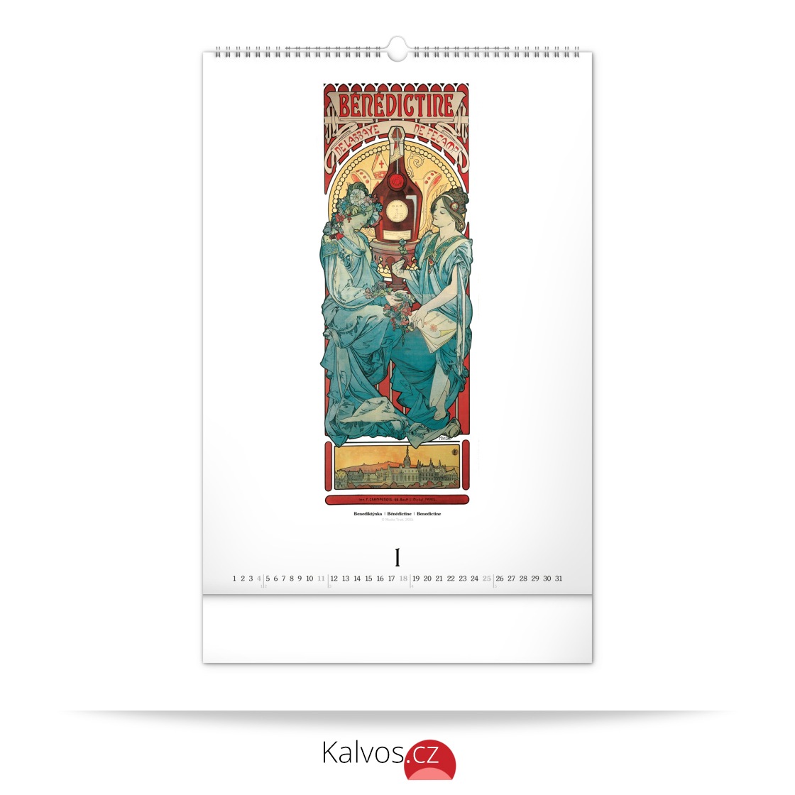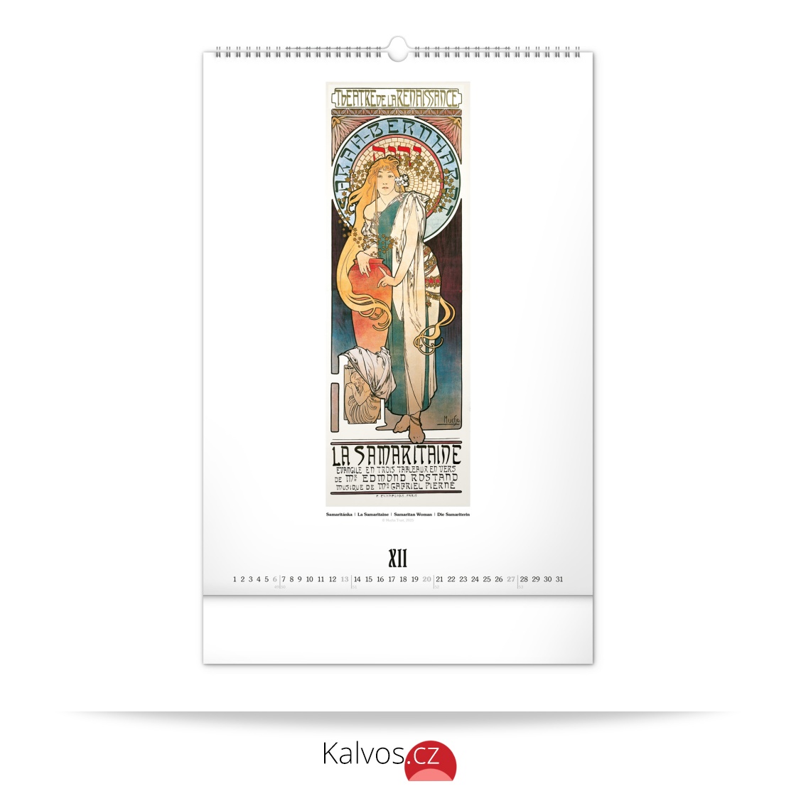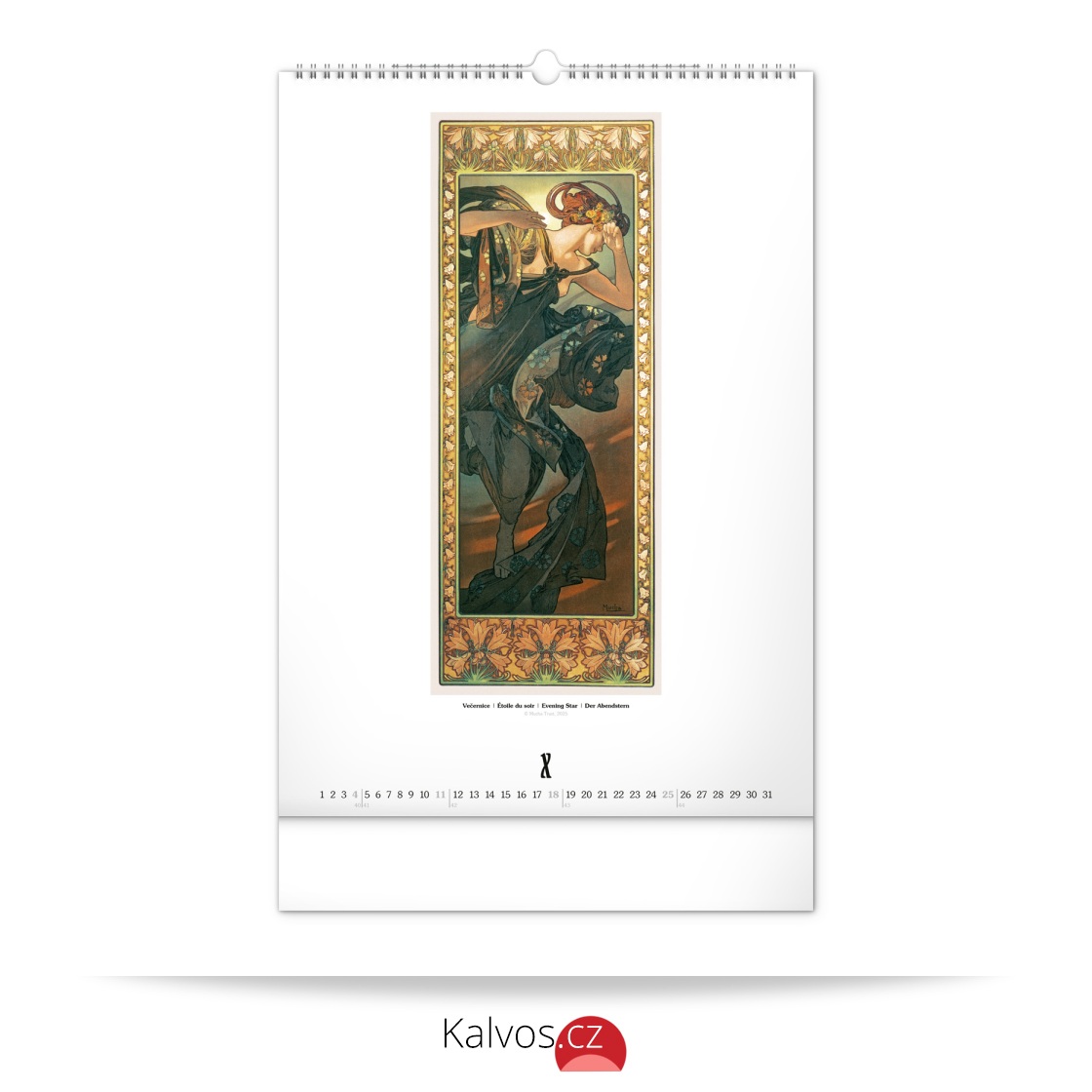 Nástěnný kalendář ve velkém formátu s reprodukcemi obrazů oblíbeného secesního malíře českého původu. Reprodukce doplňuje vkusné univerzální kalendárium s vyznačenými nedělemi a popisky děl ve čtyřech jazycích (CZ, FR, EN, DE).