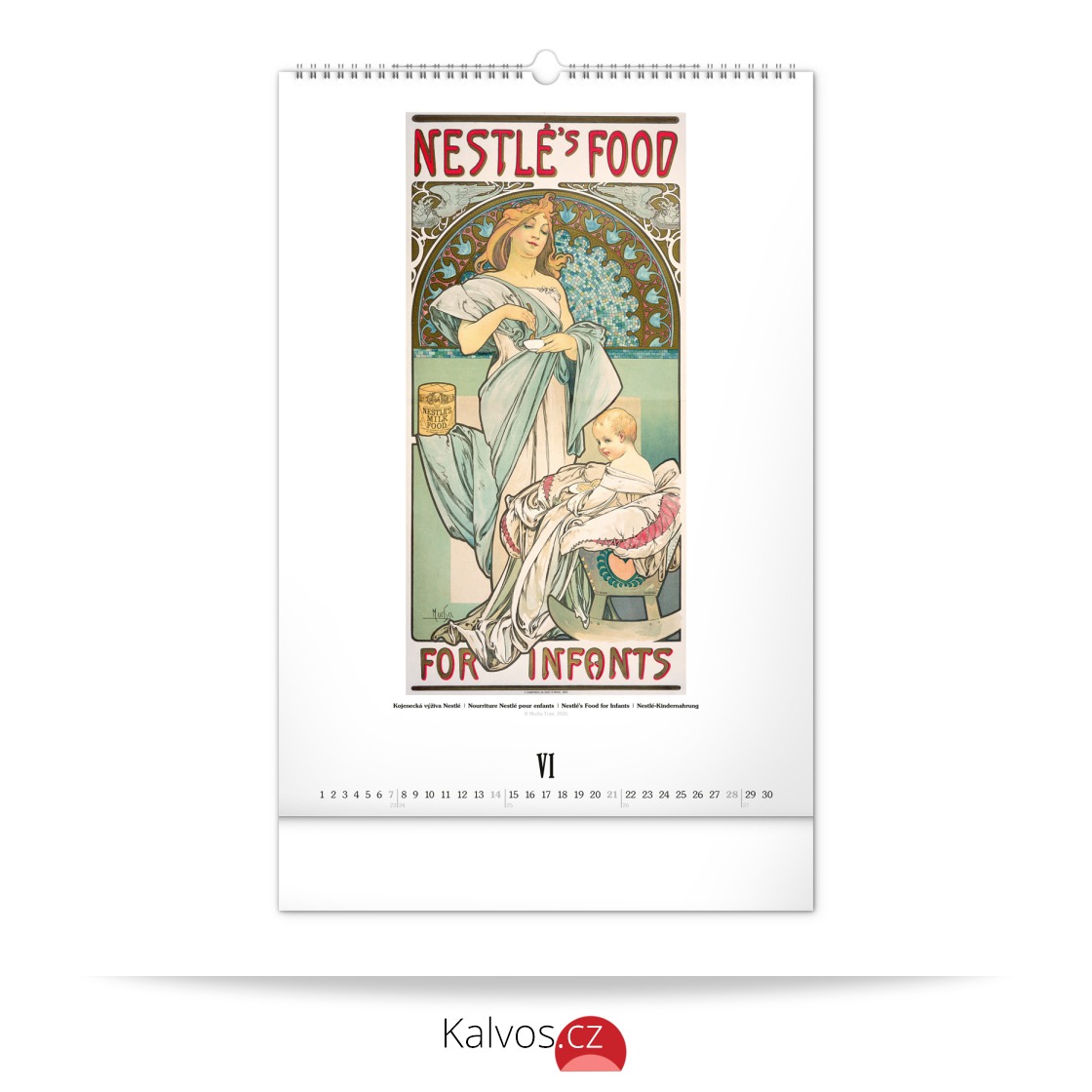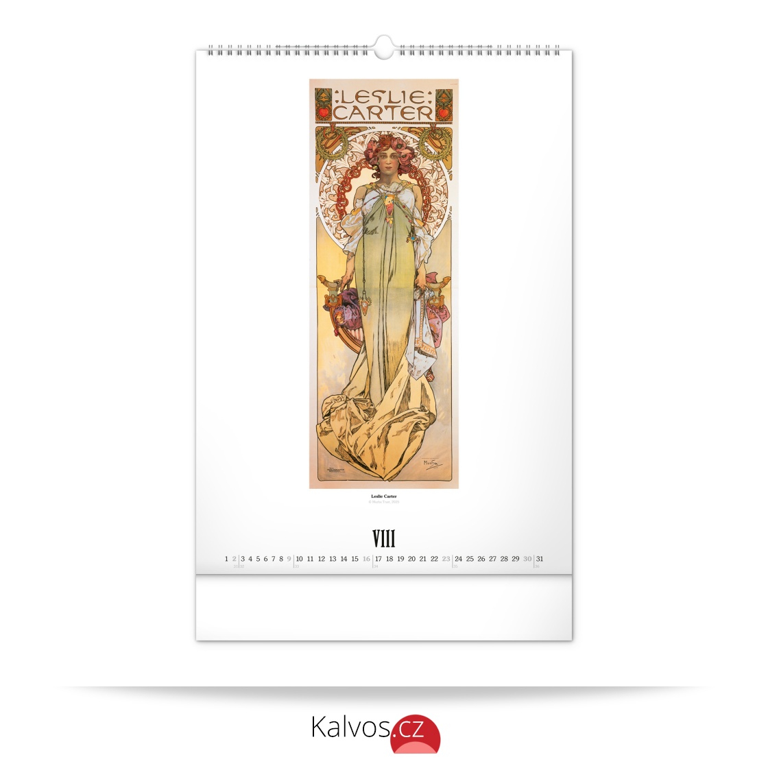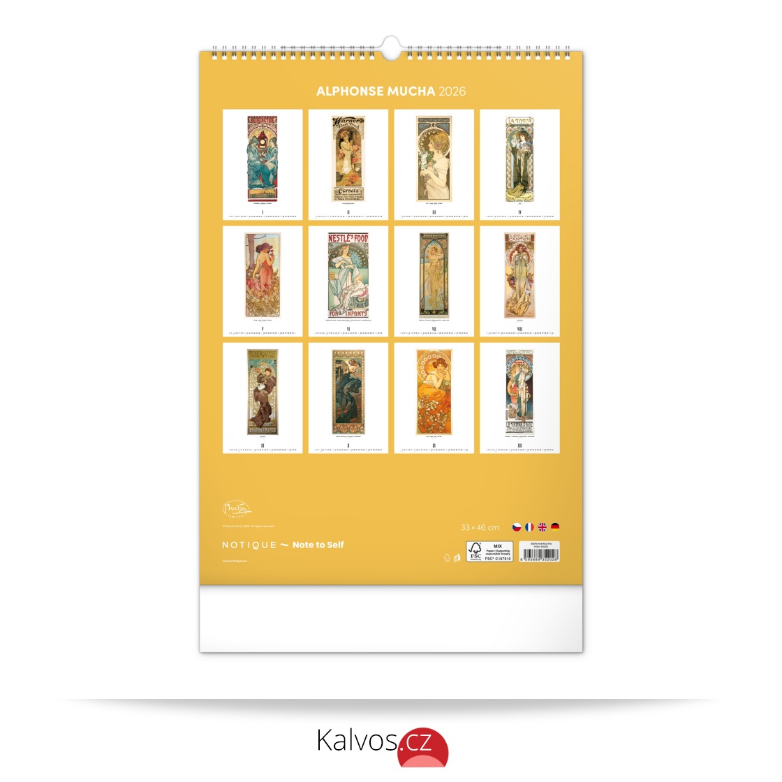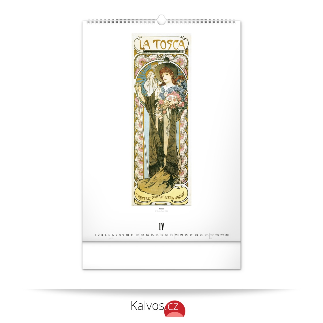 Nástěnný kalendář ve velkém formátu s reprodukcemi obrazů oblíbeného secesního malíře českého původu. Reprodukce doplňuje vkusné univerzální kalendárium s vyznačenými nedělemi a popisky děl ve čtyřech jazycích (CZ, FR, EN, DE).