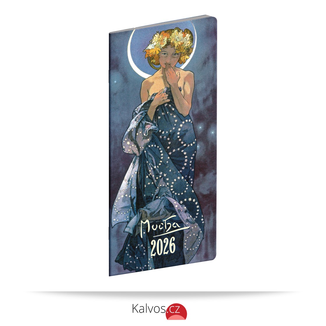 Praktický tenký diář s motivem obrazů Alfonse Muchy s měsíčním rozložením se vejde opravdu všude. Obsahuje české kalendárium se jmény, svátky a památnými dny, pracovní kalendář, seznam jmen a přehled na rok 2026 a 2027.