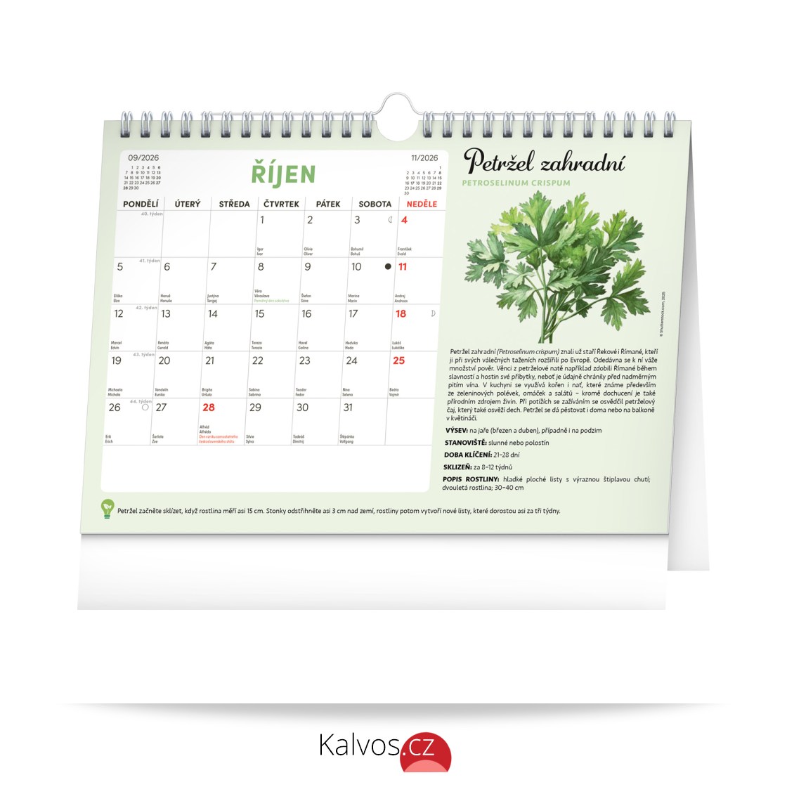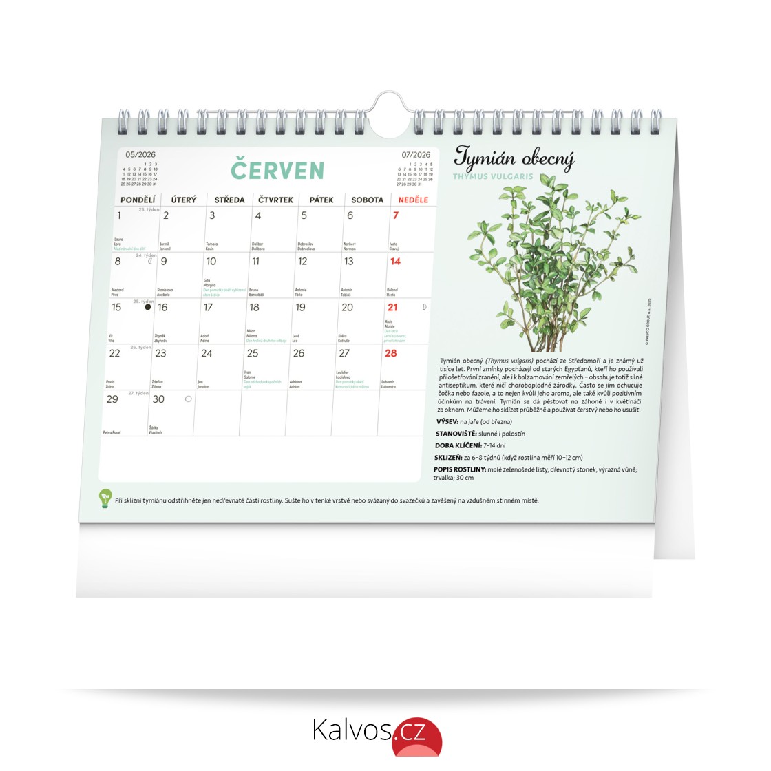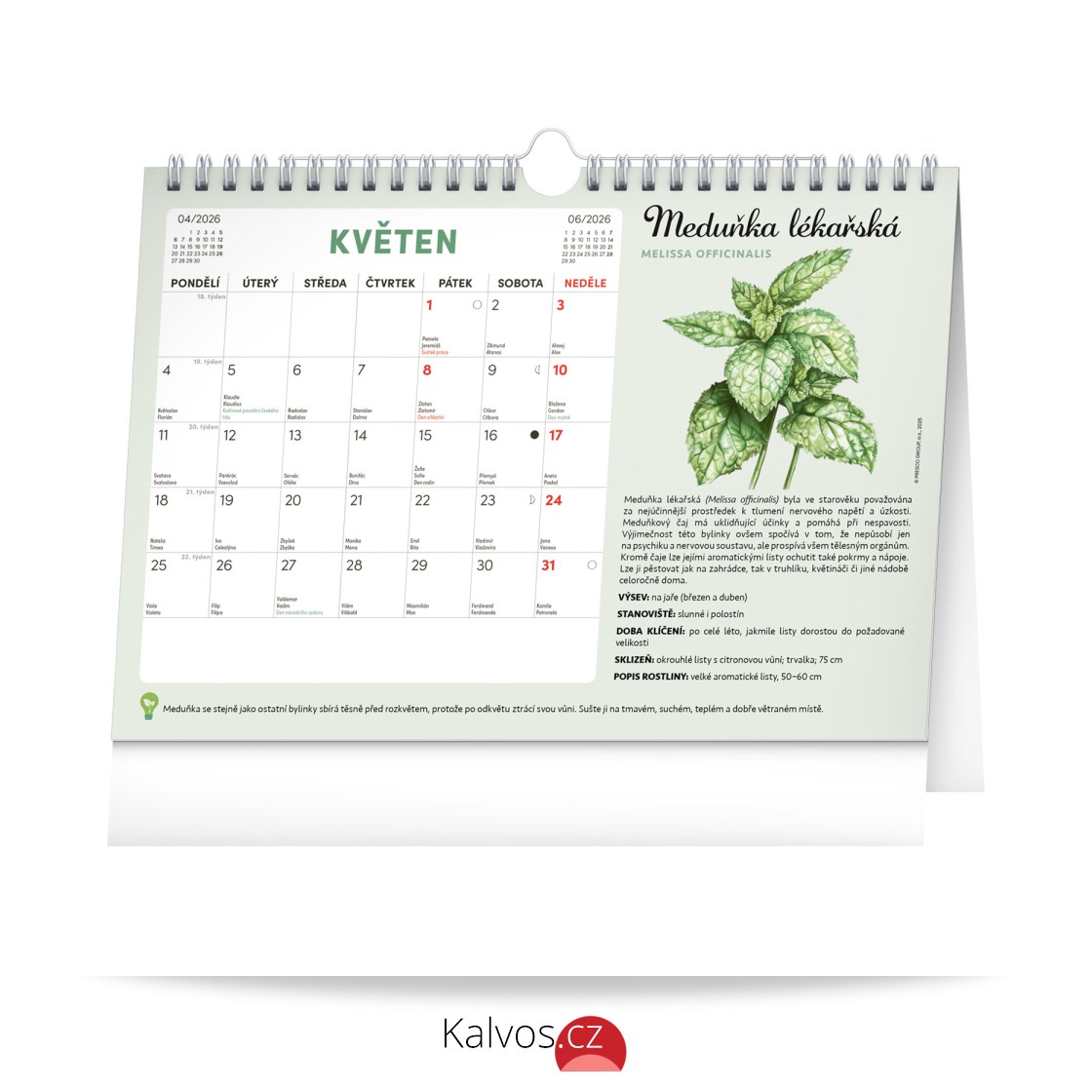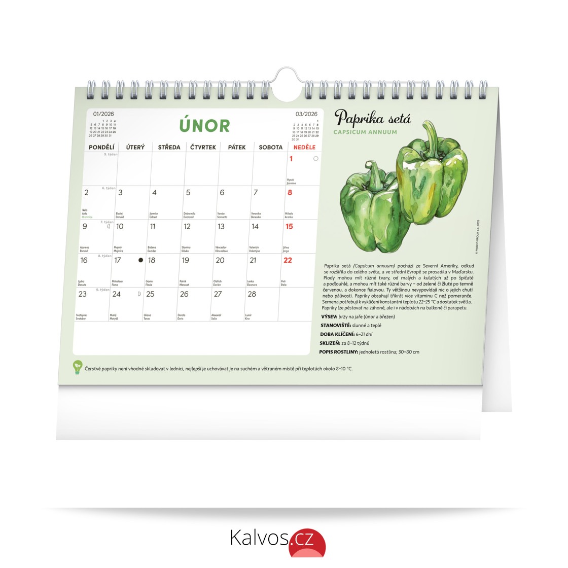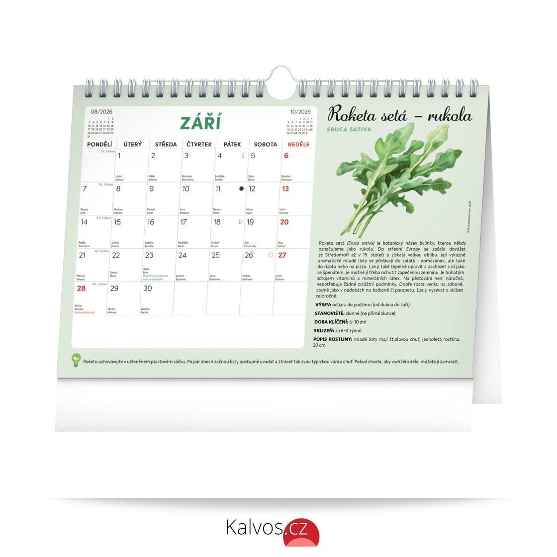 Objevte jedinečný stolní kalendář, který vám každý měsíc nabídne nejen dostatek prostoru na poznámky, ale i semínka rostlin, jež si můžete snadno vypěstovat doma. Stačí zasadit speciální semínkový papír do hlíny, zalévat a sledovat, jak vám rostou rajčata, bazalka, meduňka a další bylinky či zelenina. Ideální pro všechny, kteří chtějí zažít radost z pěstování a mít kousek zahrádky přímo u sebe doma. Obahuje měsíční kalendárium s českými svátky a jmeninami a 12 archů speciálního papíru se semínky.