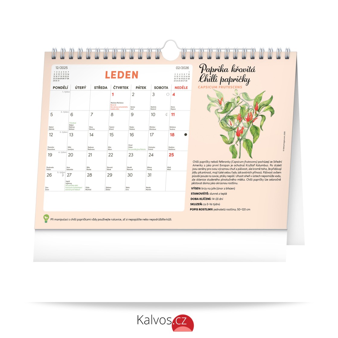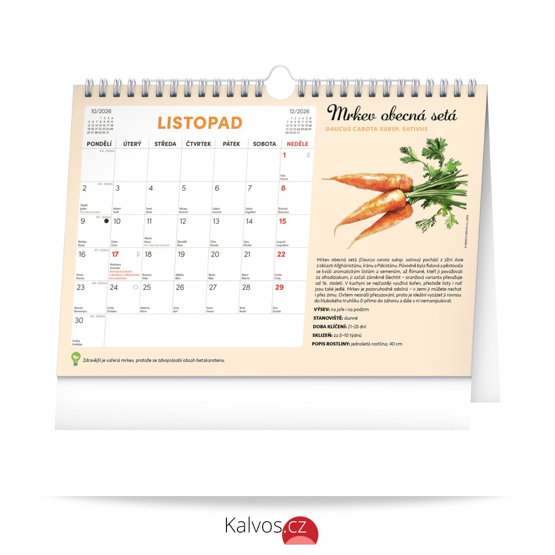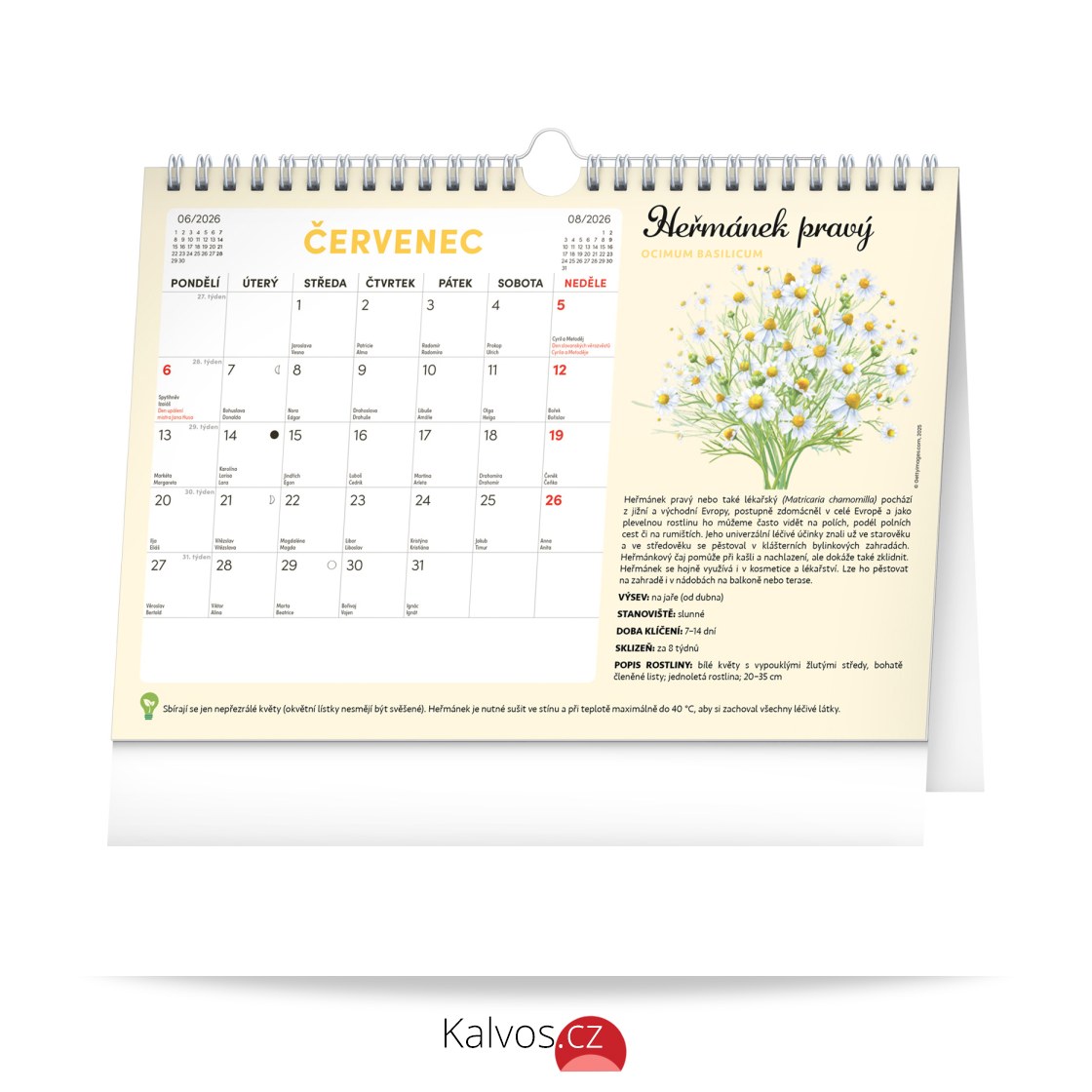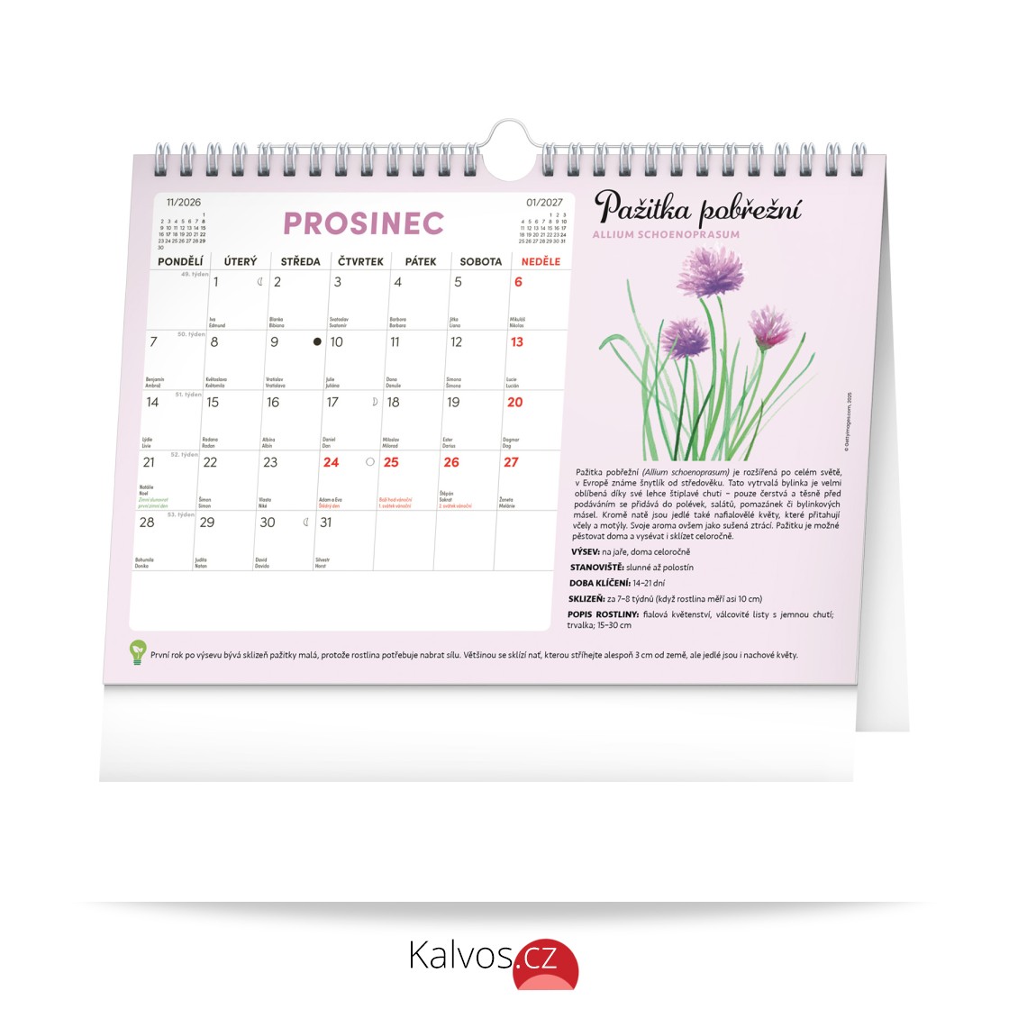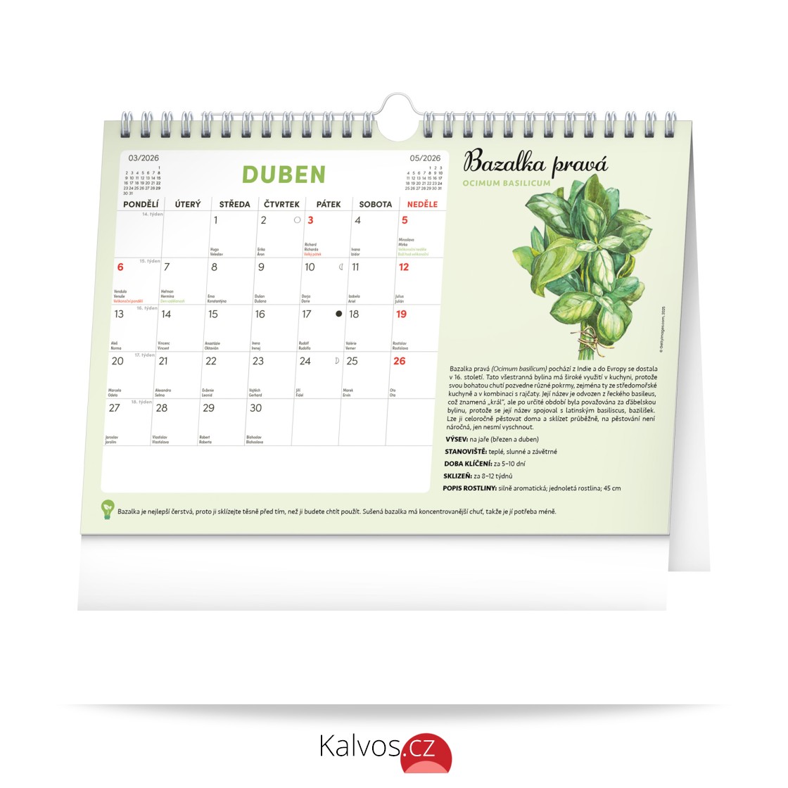 Objevte jedinečný stolní kalendář, který vám každý měsíc nabídne nejen dostatek prostoru na poznámky, ale i semínka rostlin, jež si můžete snadno vypěstovat doma. Stačí zasadit speciální semínkový papír do hlíny, zalévat a sledovat, jak vám rostou rajčata, bazalka, meduňka a další bylinky či zelenina. Ideální pro všechny, kteří chtějí zažít radost z pěstování a mít kousek zahrádky přímo u sebe doma. Obahuje měsíční kalendárium s českými svátky a jmeninami a 12 archů speciálního papíru se semínky.