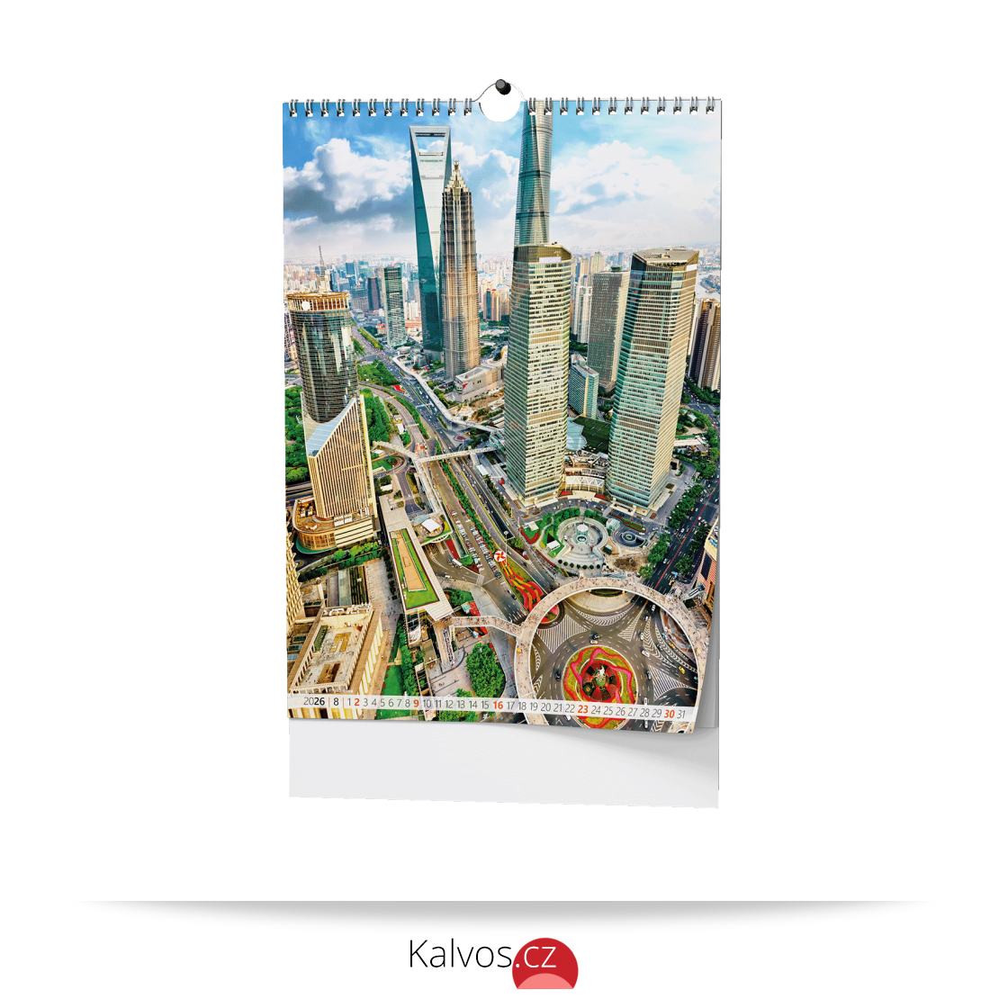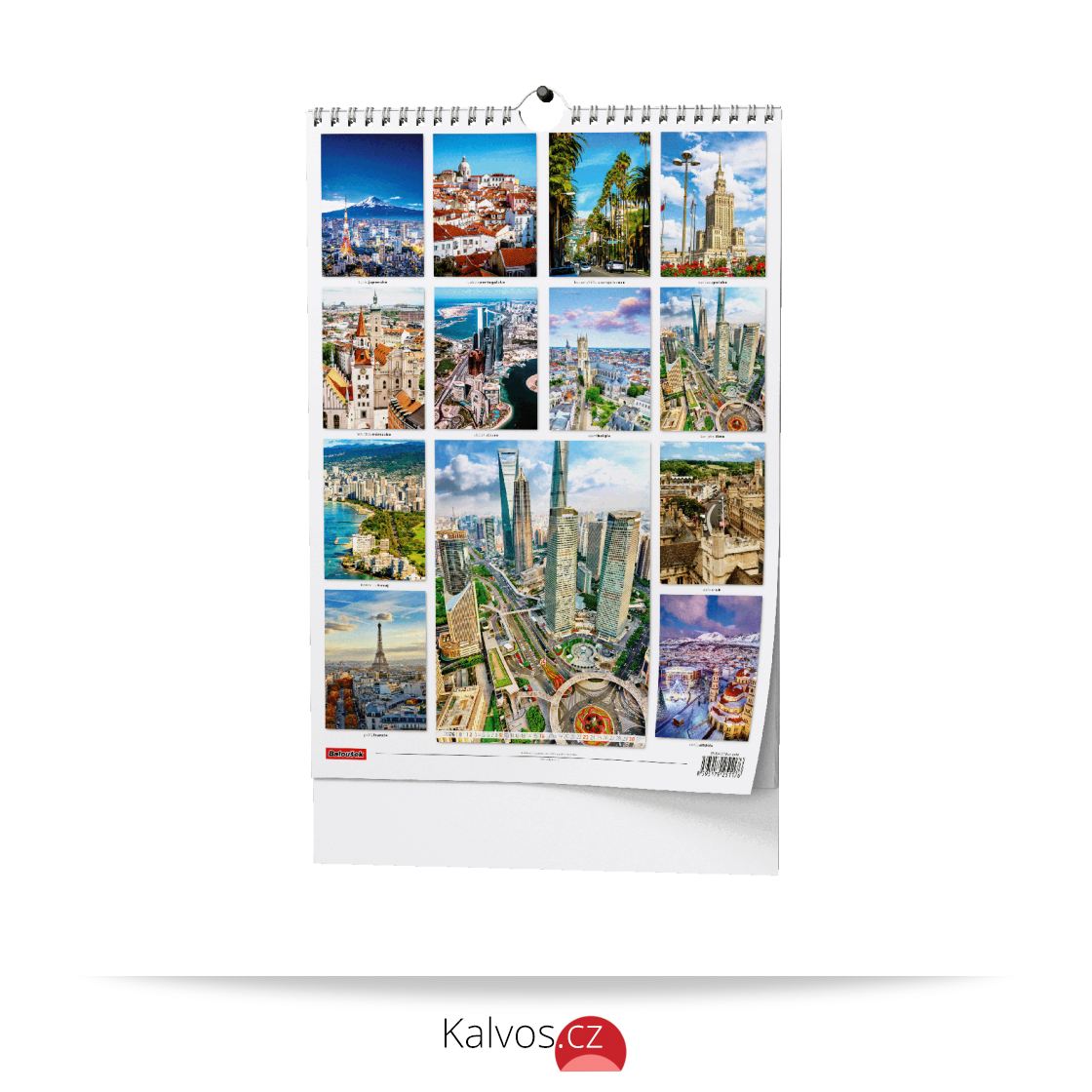 • kovová spirála twin wire po celé šířce kalendáře s háčkem pro zavěšení, obálka je tištěna na křídový papír s gramáží 150 g/m2, spodní karton je z kvalitní bílé lepenky v gramáži 600 g/m2