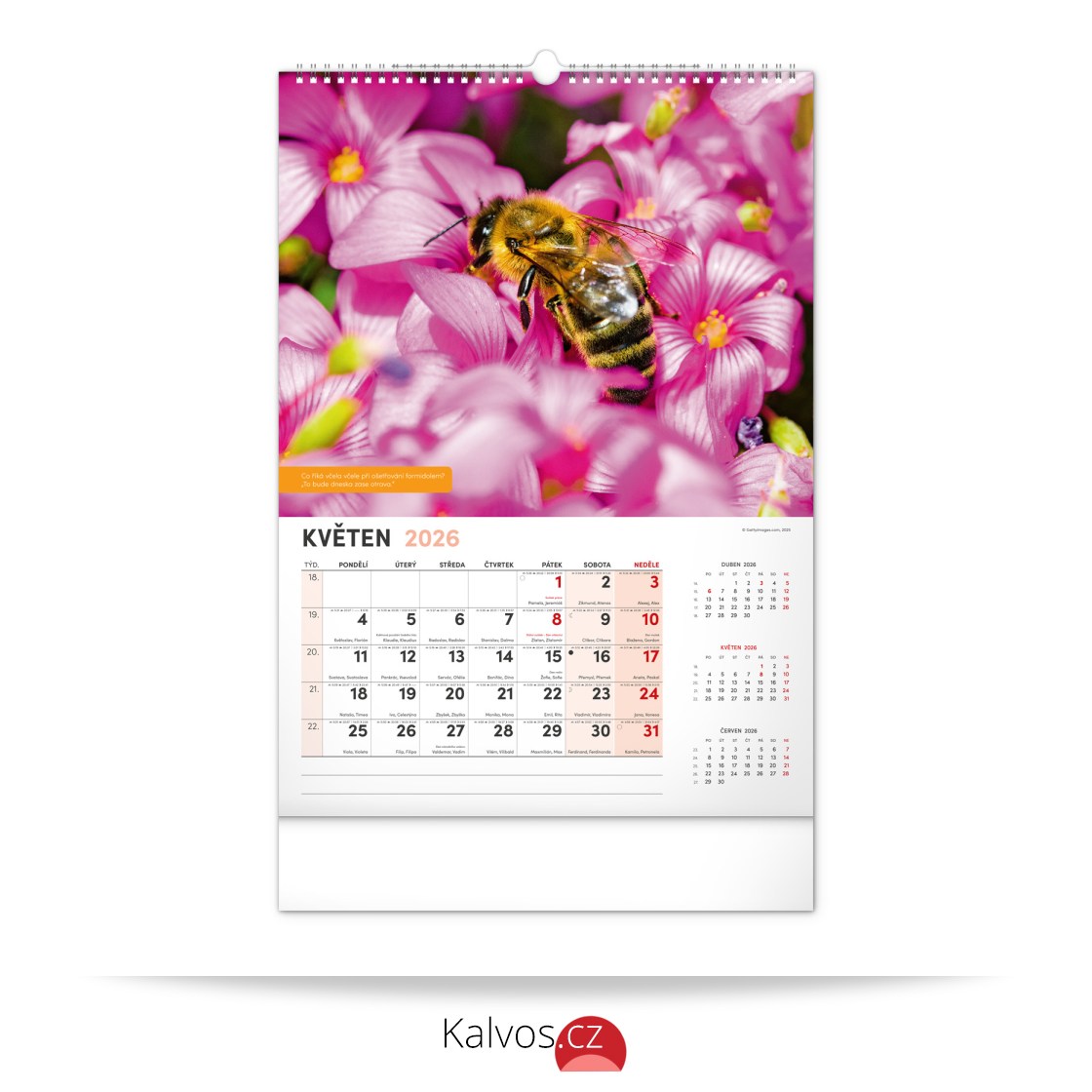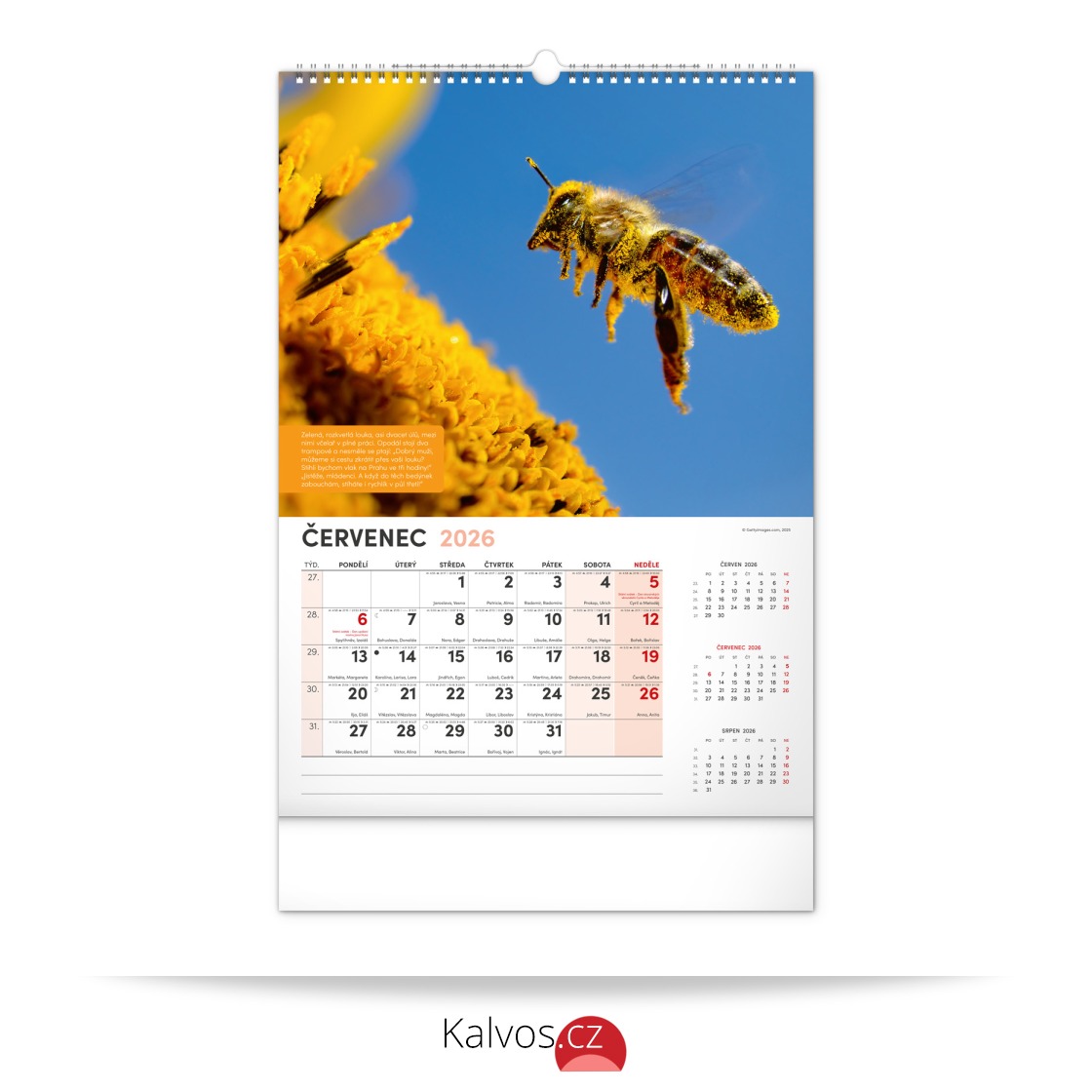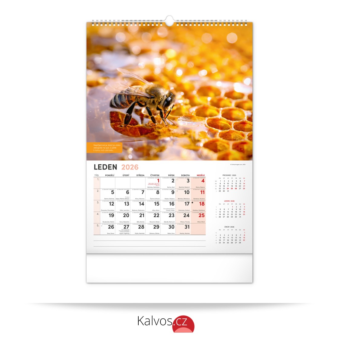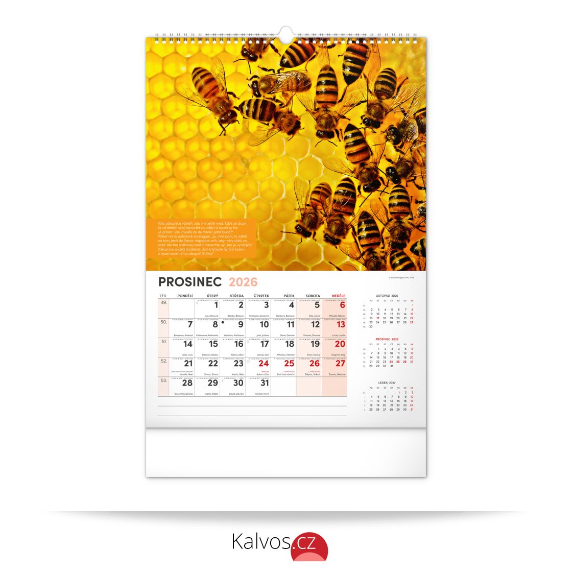 Nástěnný kalendář pro všechny začínající i pokročilé včelaře. Fotografie každý měsíc doplňují pranostiky, včelařská moudra a co by měl v daný měsíc včelař udělat. Kalendář obsahuje české kalendárium se jmény a svátky, také památné dny a východy a západy slunce. S naším kalendářem se budete hned pustit do včelaření!