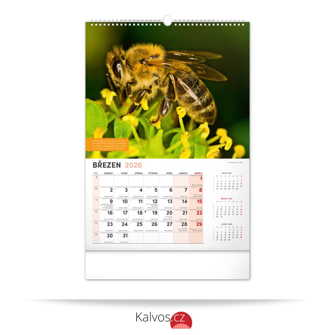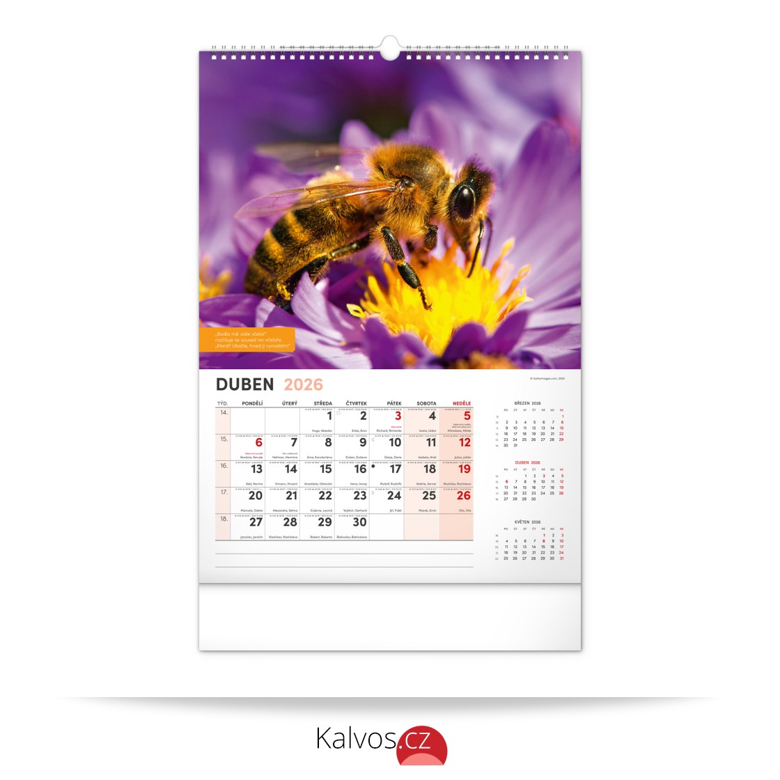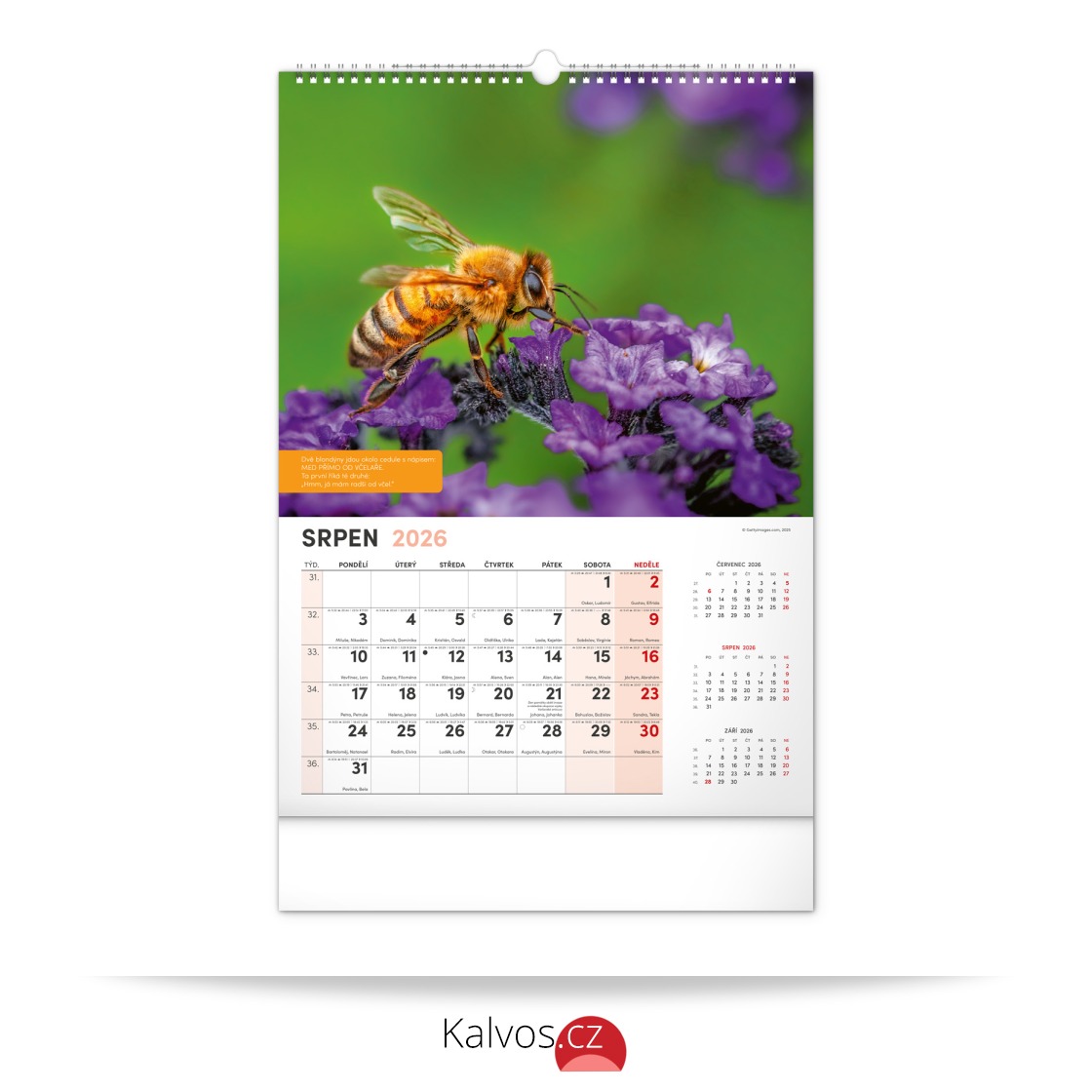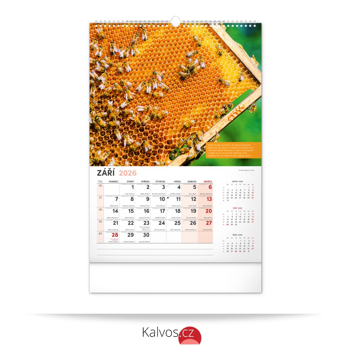 Nástěnný kalendář pro všechny začínající i pokročilé včelaře. Fotografie každý měsíc doplňují pranostiky, včelařská moudra a co by měl v daný měsíc včelař udělat. Kalendář obsahuje české kalendárium se jmény a svátky, také památné dny a východy a západy slunce. S naším kalendářem se budete hned pustit do včelaření!