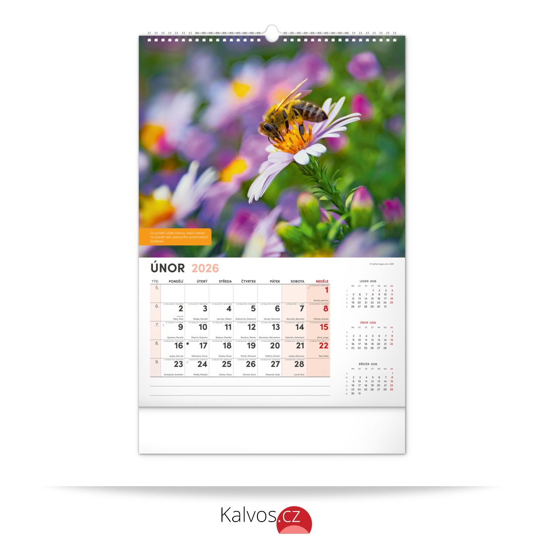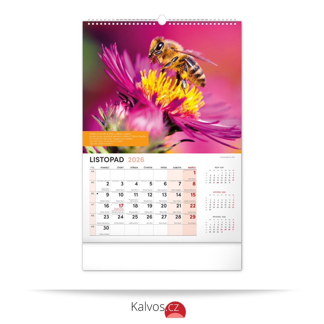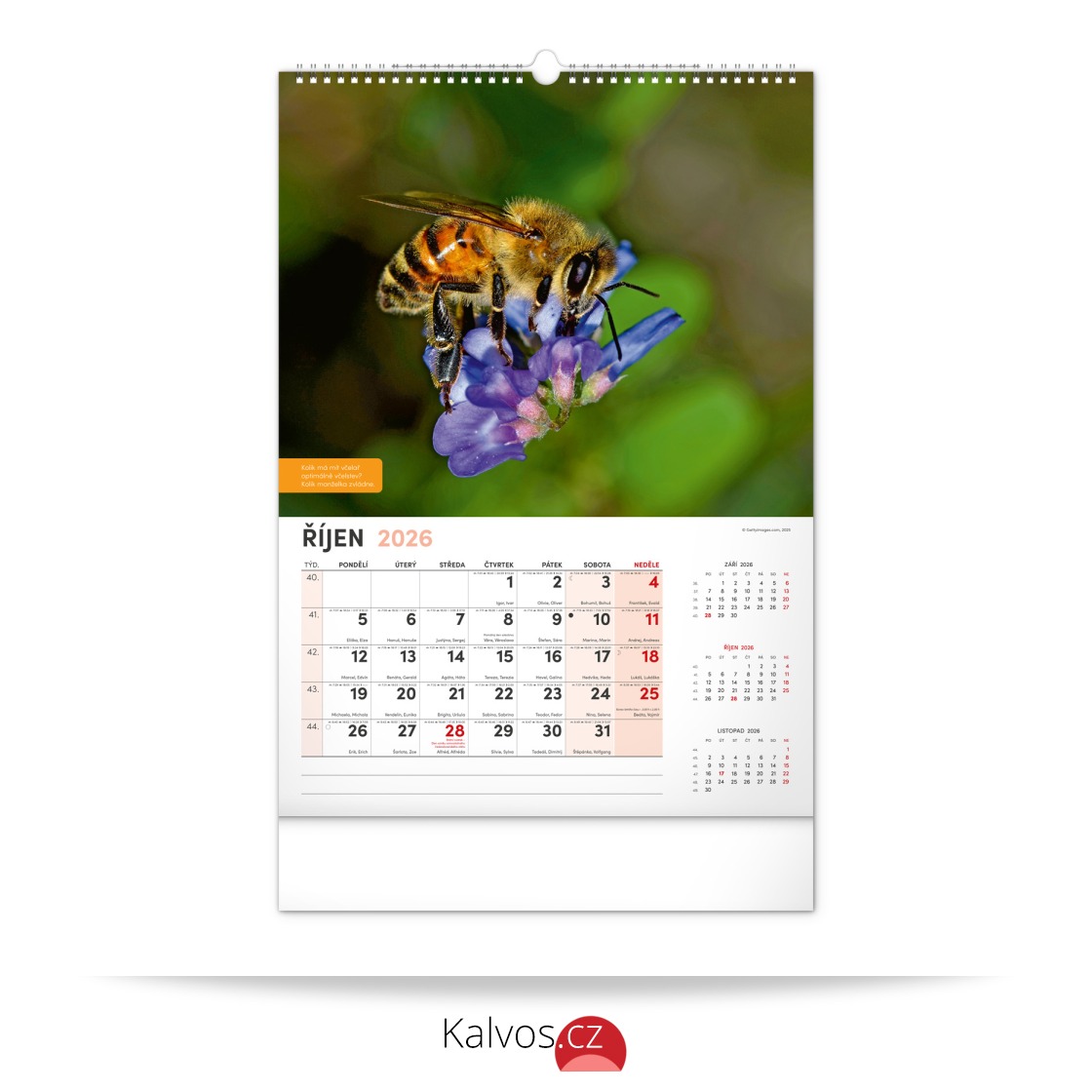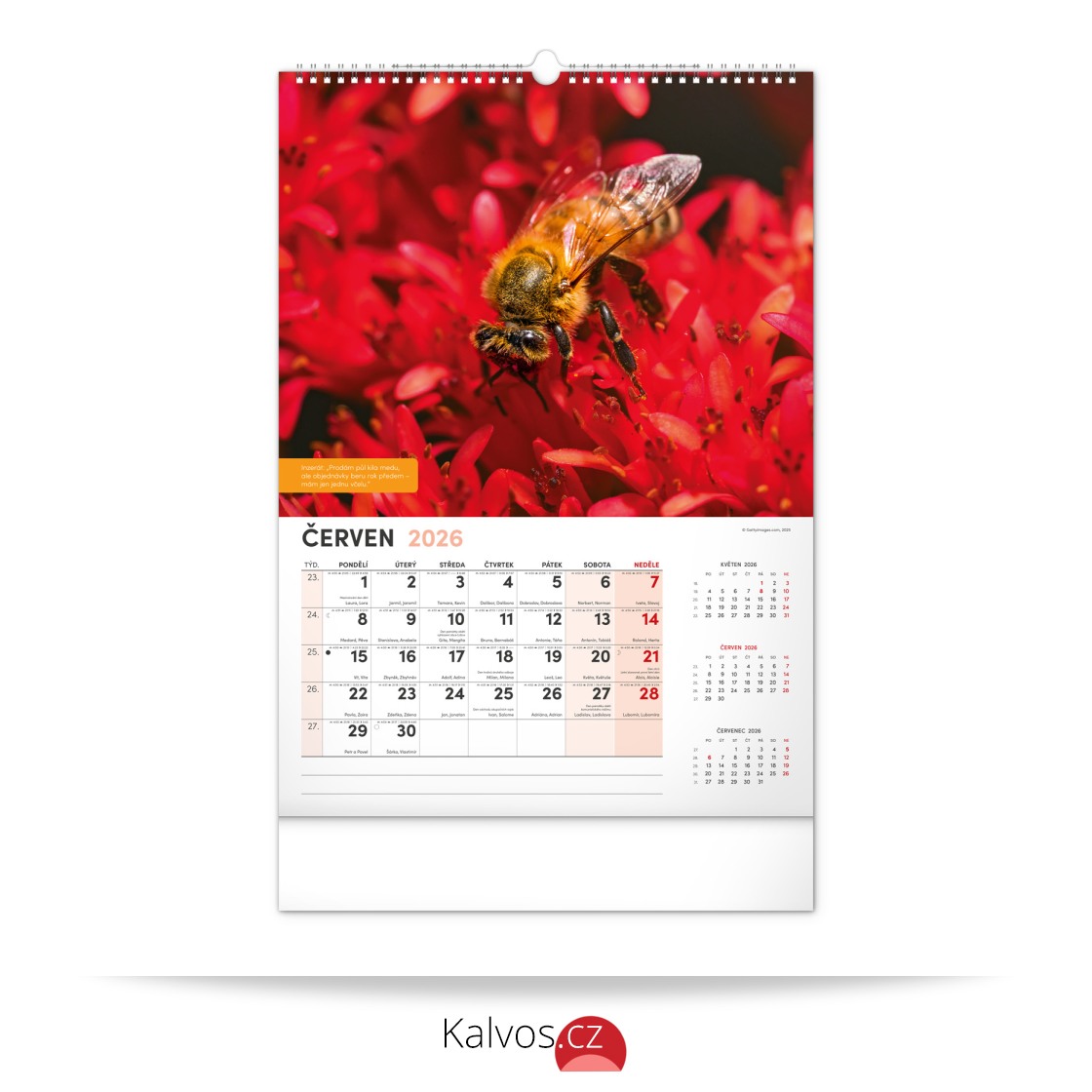 Nástěnný kalendář pro všechny začínající i pokročilé včelaře. Fotografie každý měsíc doplňují pranostiky, včelařská moudra a co by měl v daný měsíc včelař udělat. Kalendář obsahuje české kalendárium se jmény a svátky, také památné dny a východy a západy slunce. S naším kalendářem se budete hned pustit do včelaření!