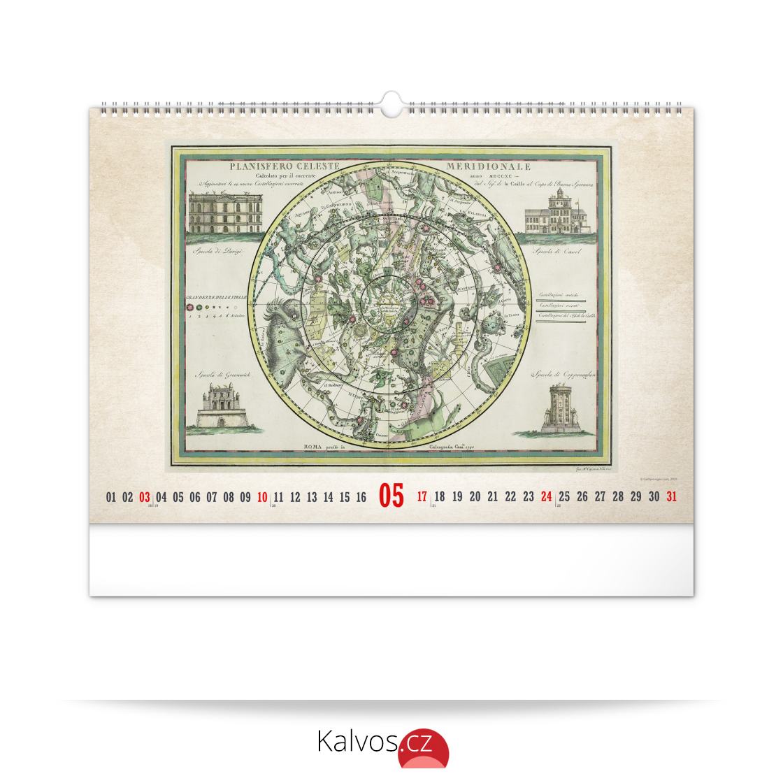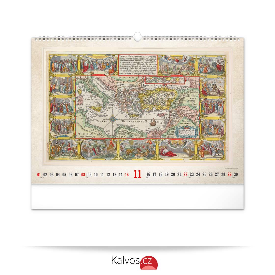 Kalendář pro všechny znalce ručně vytvořených map z dávných dob. Detailní kresby s estetickou hodnotou ale potěší i milovníky užitého umění. Jednoduché kalendárium na bílém pozadí.