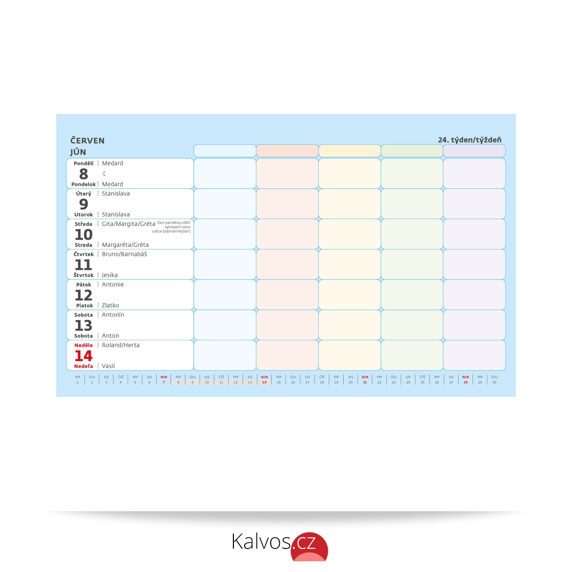 Týdenní rodinný plánovací kalendář stolní kalendář