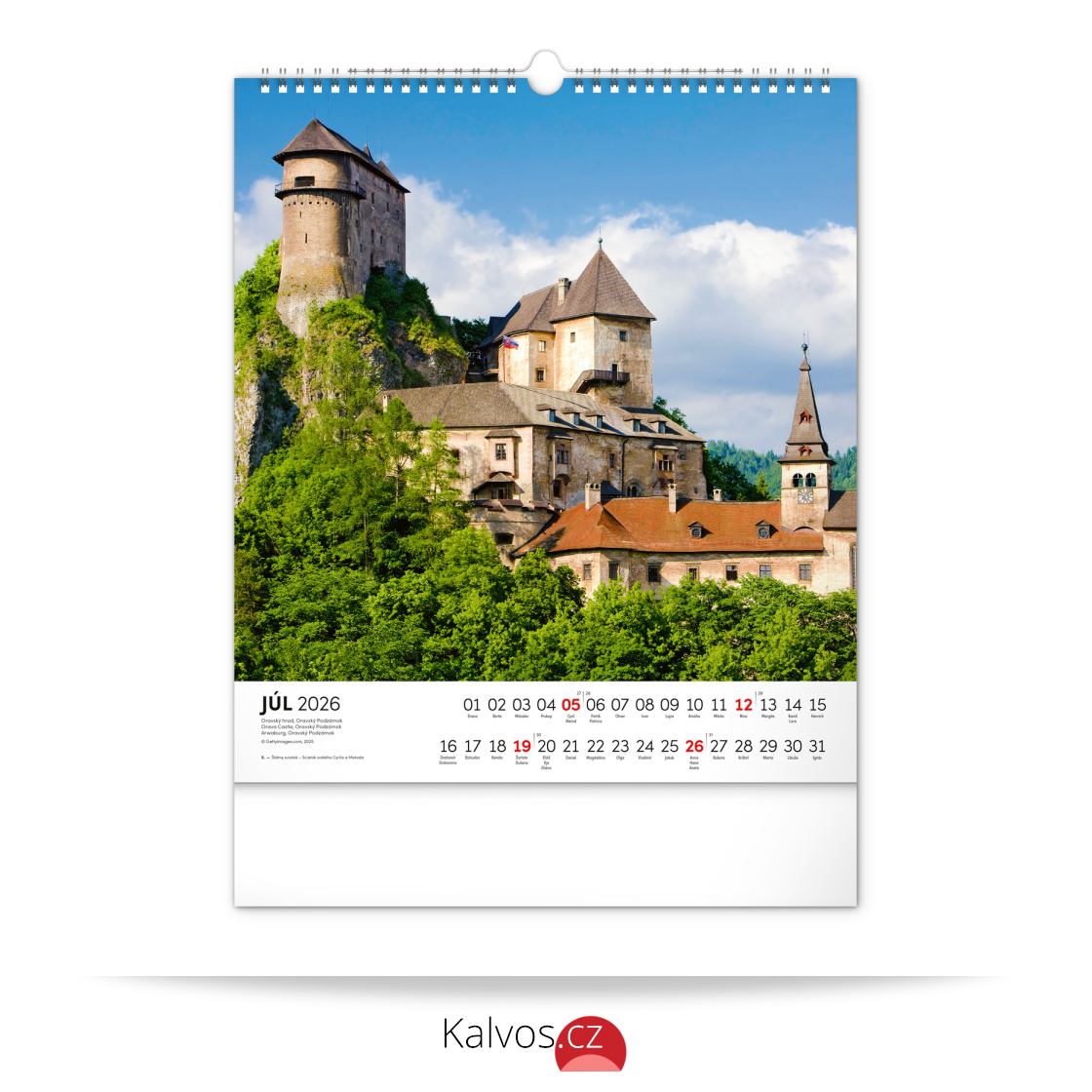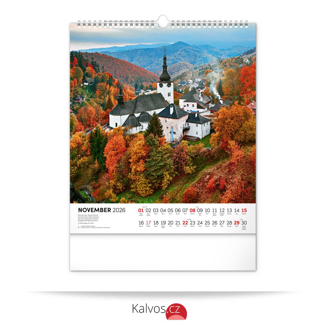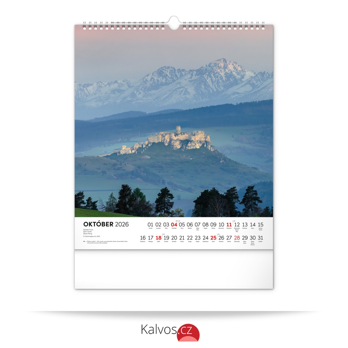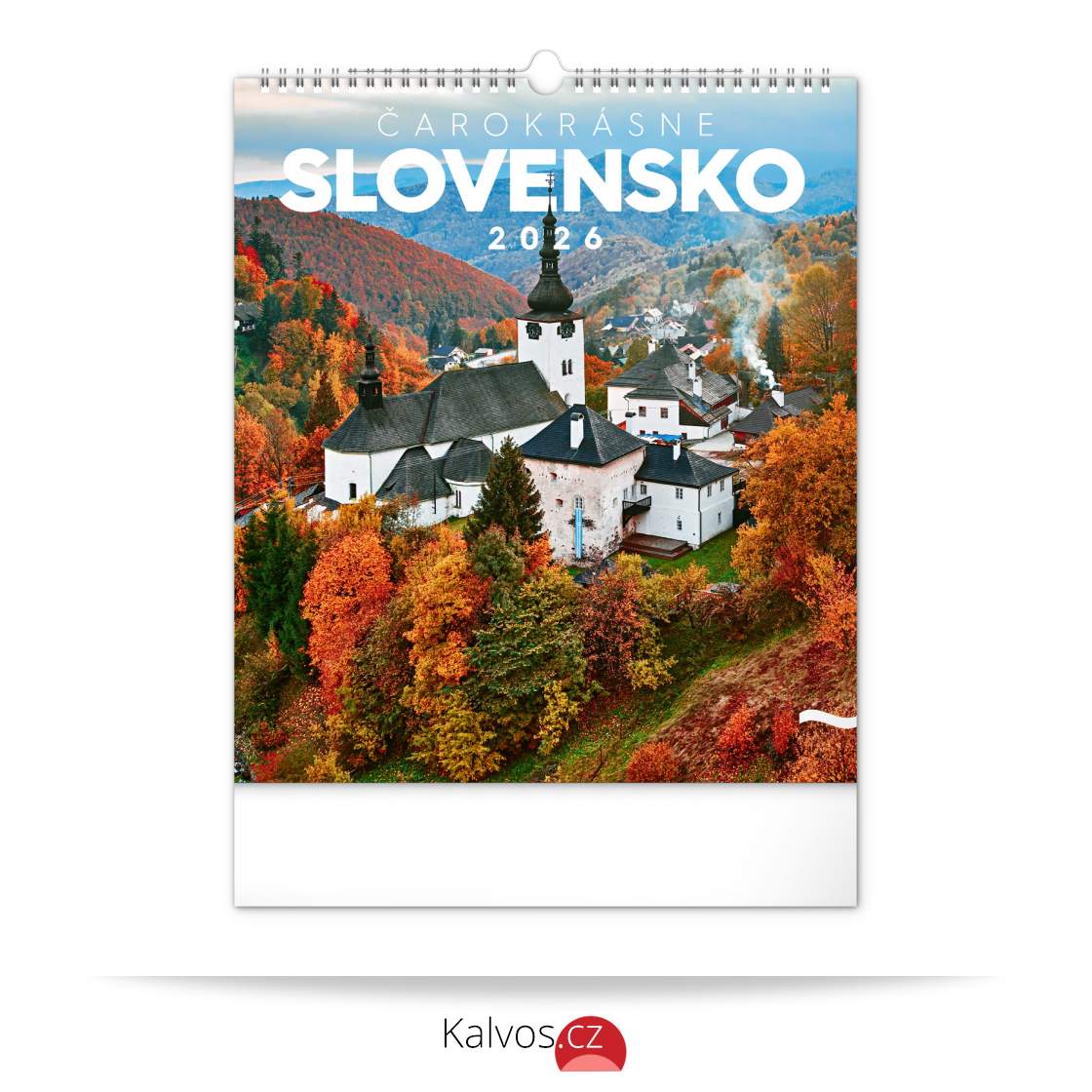 Přírodní a kulturní dědictví Slovenska na stránkách kalendáře v oblíbeném výškovém formátu. Fotografie doplňuje slovenské kalendárium se zvýrazněnými svátky a nedělemi.