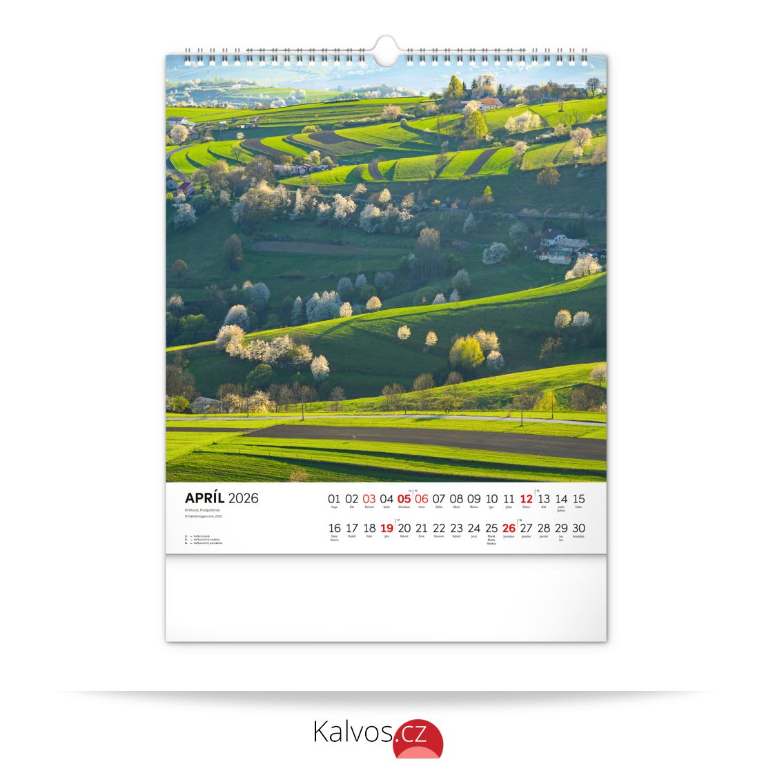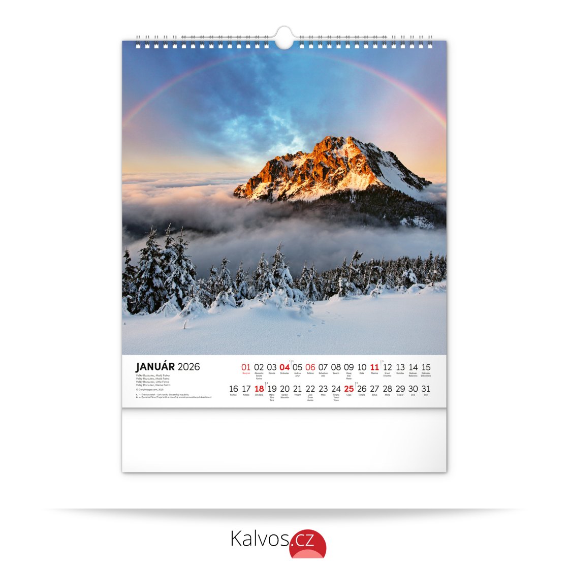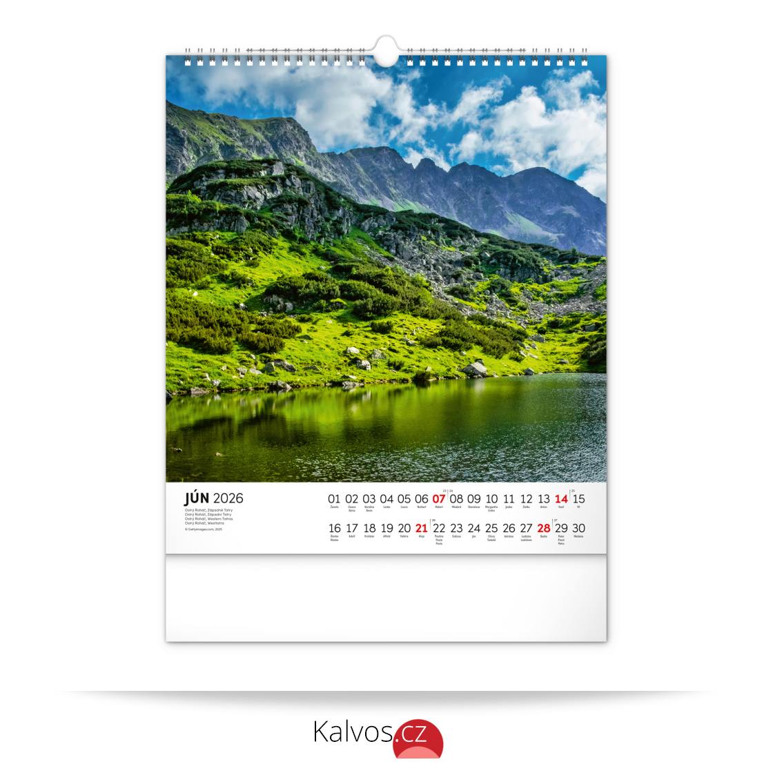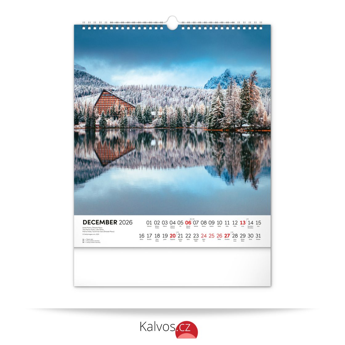 Přírodní a kulturní dědictví Slovenska na stránkách kalendáře v oblíbeném výškovém formátu. Fotografie doplňuje slovenské kalendárium se zvýrazněnými svátky a nedělemi.