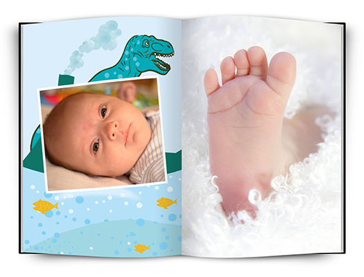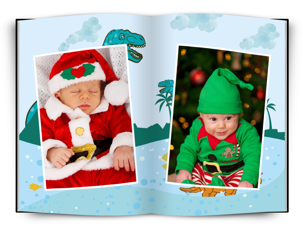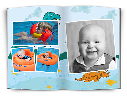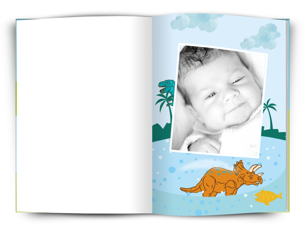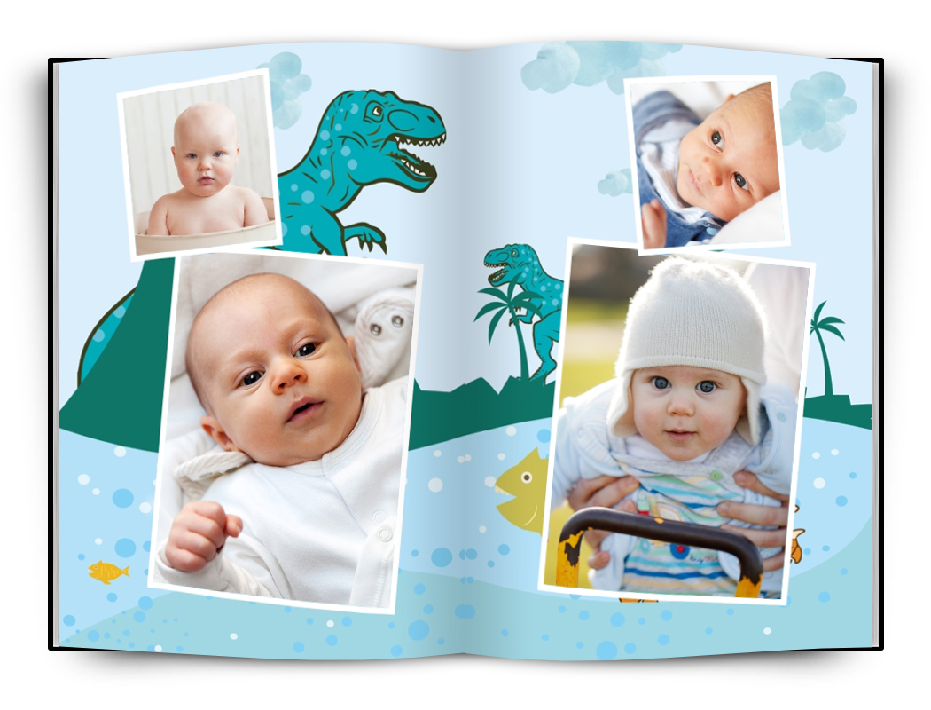 Fotokniha s dětskou tématikou pro zachycení okamžiků Vašich dětí. Univerzální dinosauří motiv je vhodný jak pro holčičku tak pro chlapečka. Ve fotoknize je připraveno několik rozvržení fotografií na stránce. Fotografie jsou doplněny vkusnými bílými rámečky.