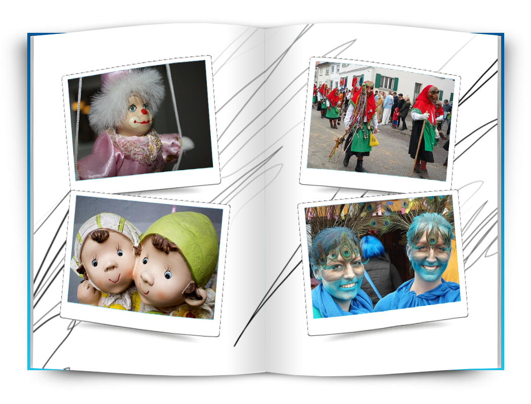 Univerzální design pro Vaši fotoknihu. Jednoduché pozadí, jemné rámečky fotografií.
