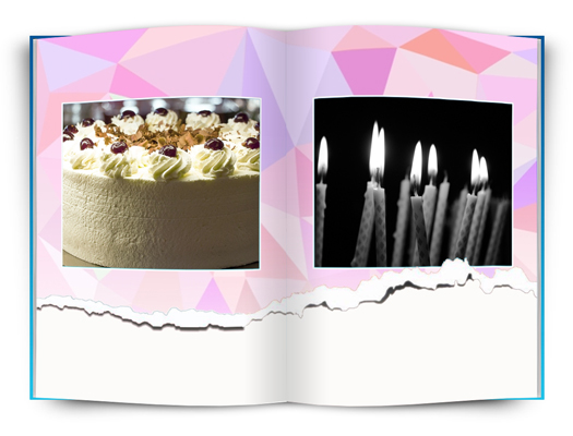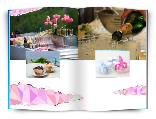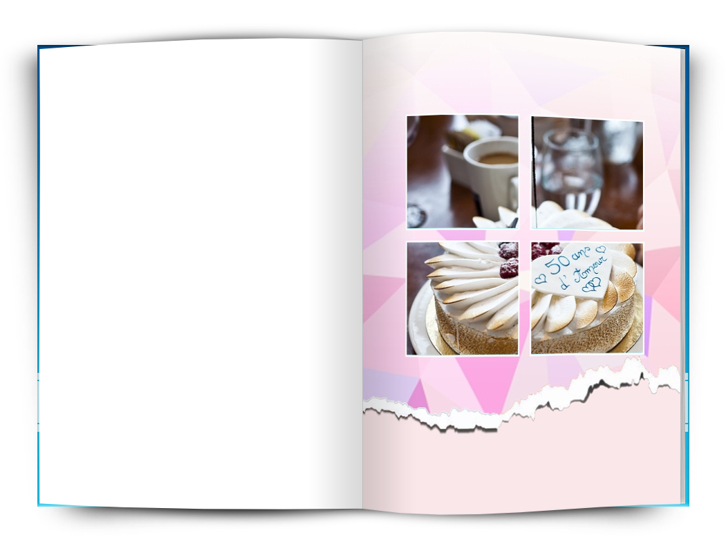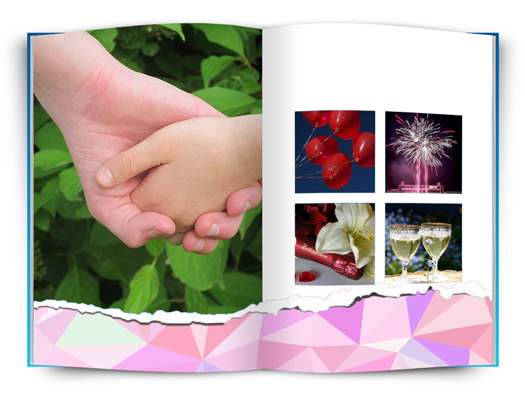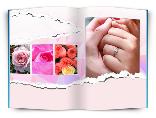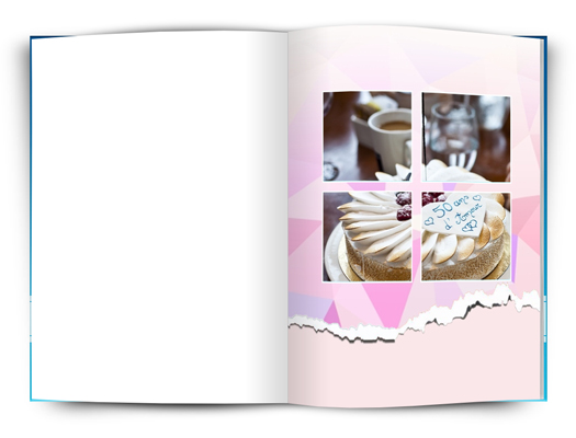 Tato fotokniha je ideální pro zamilované. Růžové motivy s jednoduchými rámečky nebo fotografiemi přes celou stránku.