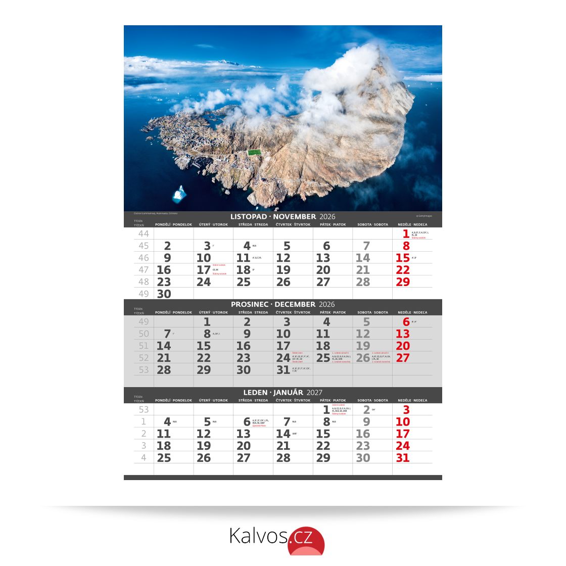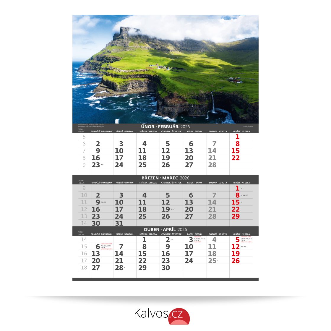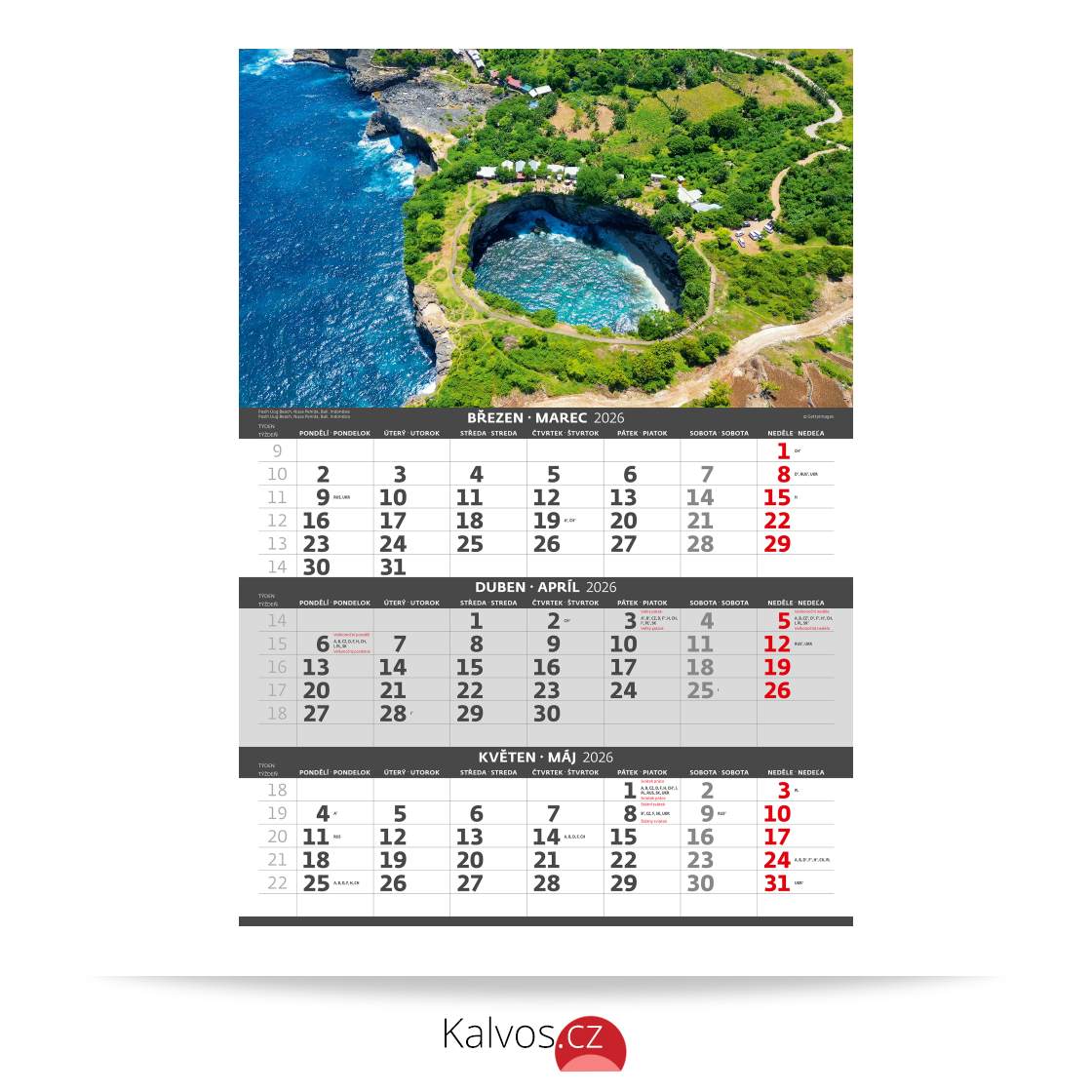 Formát kalendáře: 31,5 x 45 cm