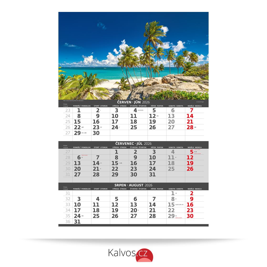 • nástěnný kalendář je jednotlivě zabalený v igelitové tašce o rozměru: 335 x 620 cm
