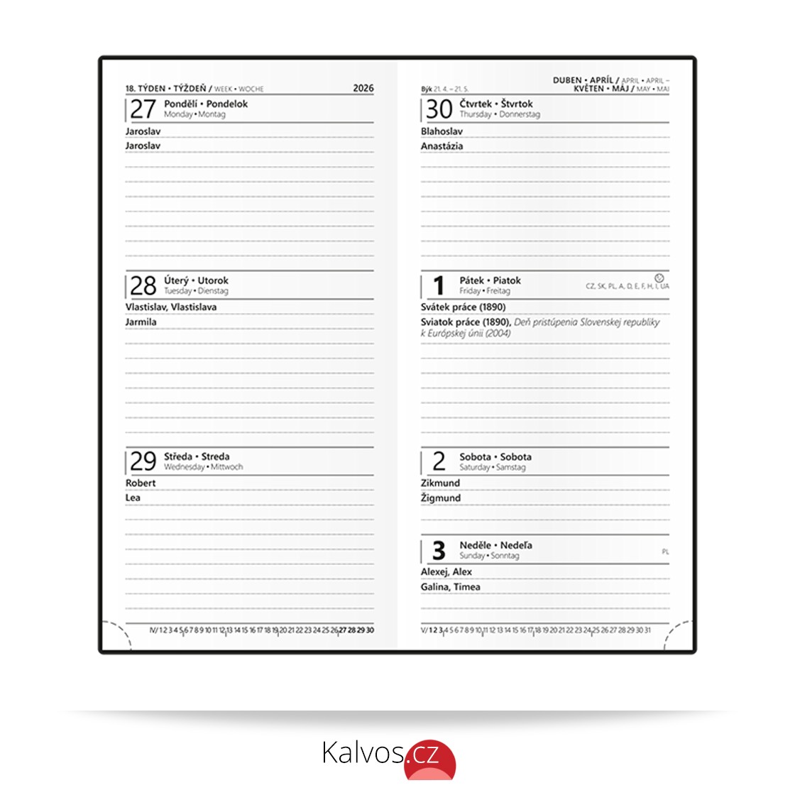 CDSM E-shop Diáře Diáře 2026 Diáře podle barvy Stříbrné diáře Kapesní diáře stříbrné Týdenní kapesní diáře stříbrné