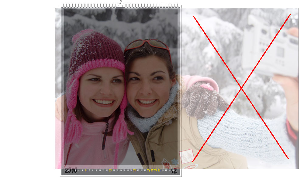 Vyberete si například šablonu číslo: NKN-08. U kalendáře je uvedena orientace na výšku a velikost fotografie 194 x 268 mm při formátu A4. Avšak Vy si zvolíte fotografii, která je orientovaná na šířku. Co se může stát?